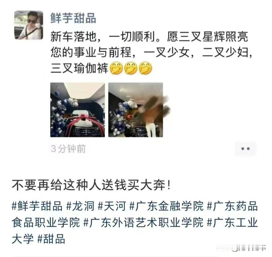12月9日,广州一家名为“鲜芋甜品”的男店主因在朋友圈发布低俗文案,遭网友集体抵制后次日倒闭。 次店男店主在新车落地朋友圈文案中使用奔驰三叉星徽标志的“梗”,配文“一叉少女,二叉少妇,三叉瑜伽裤”。其店铺主要客群为广东金融学院、广东工业大学等校女学生,该文案引发消费群体的强烈谴责,迅速引发抵制。龙洞派出所接到报警后以对其批评教育,当事人表示“已澄清道歉且忏悔”。龙洞街道办联合居委会现场监督,责令删除不当信息并公开道歉。 该店为十年老店,却因店主个人言行店铺关闭、设备清空,社交媒体账号停更。生意瞬间崩塌。现在的经济不行,而大多数消费群体会把商家个人言行、个人品德与商铺深度绑定。这位老板图一时之爽,却把多年辛苦打拼的成果付之一炬。