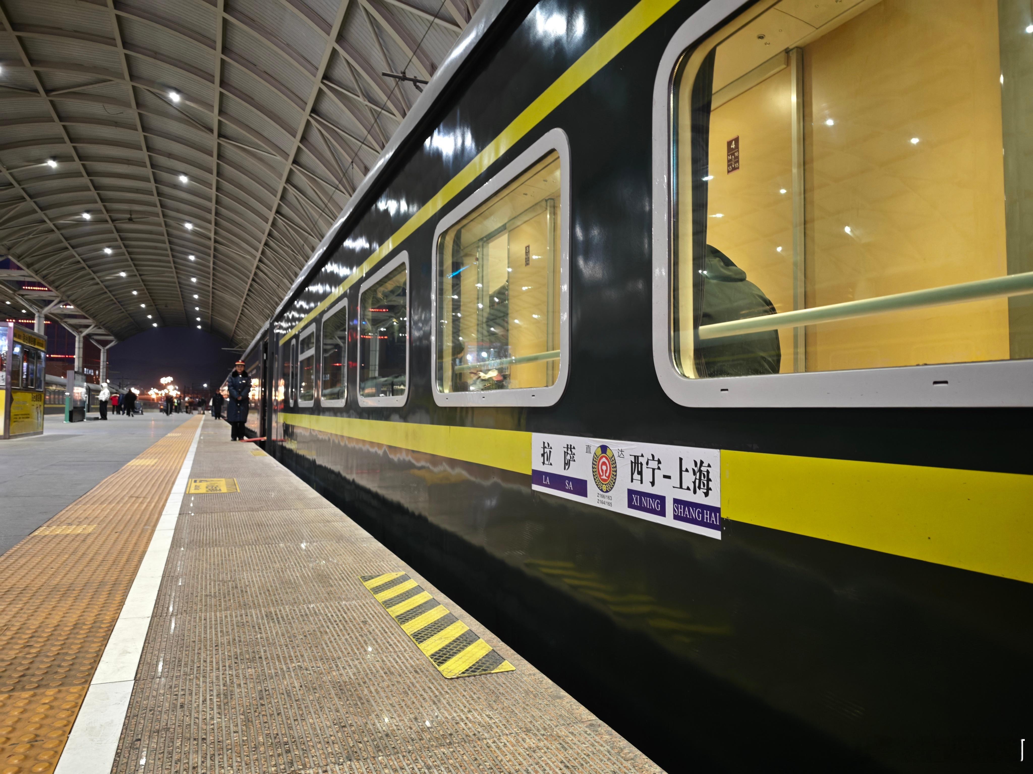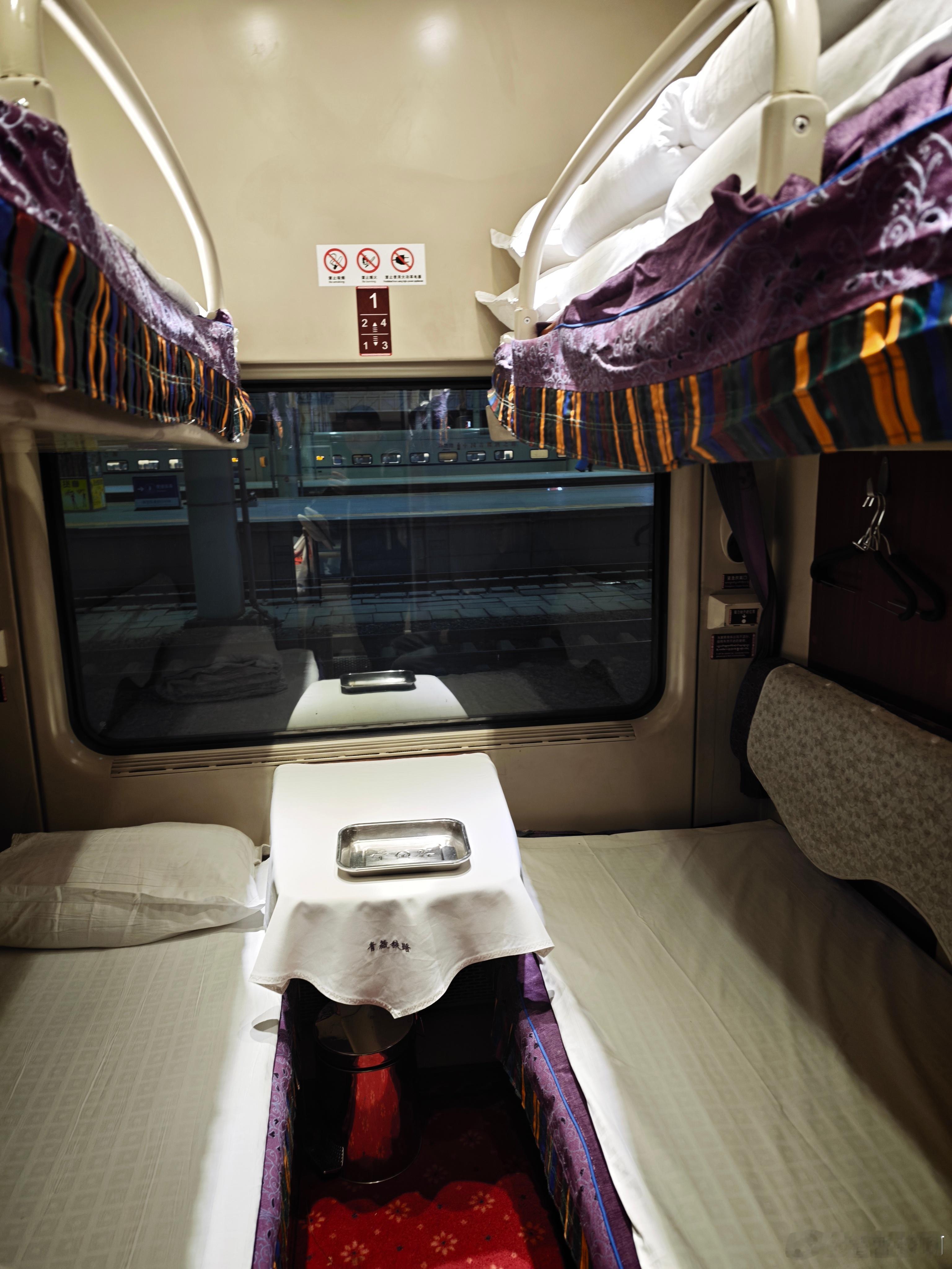 进藏的列车,都需要在西宁站更换为供养列车,接下来的行程,基本上就是一路向高原攀爬了。接着还会在格尔木更换车头,从电气化车头换成内燃机车头。就是车厢车型不一样之后,原本可以塞床底的行李箱,只能堆在过道里了。