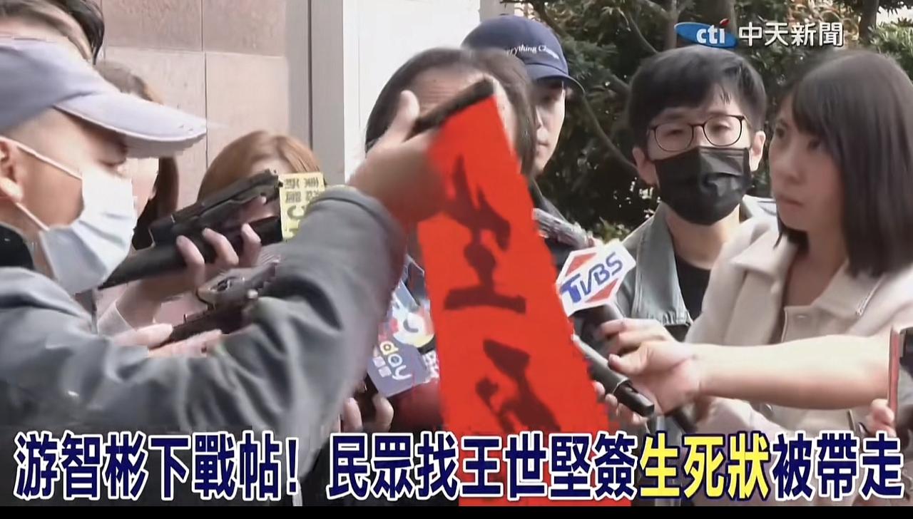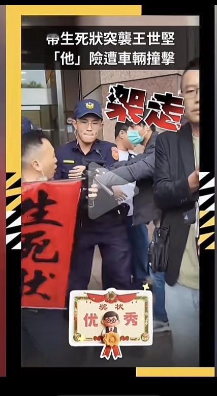 哈哈哈哈哈哈,太扯了,王世坚接受采访的时候,游智彬来找他签“生死状”!而王世坚怎么着也是叛徒的儿子,见过些场面的,十分的淡定,选择无视,最终游智彬被警察驾走!这就是台湾地区的政治圈,比娱乐圈还扯!这能发展经济民生吗?只能娱乐全世界吧!话说这会被拘留吗?!寻衅滋事![灵光一闪][灵光一闪][灵光一闪][捂脸][捂脸][捂脸][捂脸]