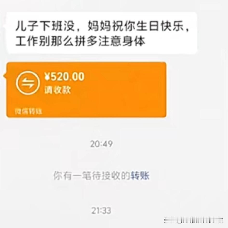 异地深夜的意外暴击,首个520竟来自老妈 刚从闷热嘈杂的车间熬完高强度班次,劳保服浸着黏腻汗渍,裹着洗不净的机油味,指尖磨得发僵,攥着手机蹲在路边只想缓口气,没成想划开屏幕的瞬间,眼眶倏地就热了。 出差在外连轴忙活,脑子被工作填得满满当当,早把自己的生日抛到九霄云外,倒是老妈的消息准时发来:“儿子生日快乐,妈给你转520,在外别亏着自己,买点好的补补。” 活了二十多年,听过无数浪漫说辞,收过朋友的零散祝福,却从没想过,人生第一个520红包,竟来自连表情包都用不利索、总说年轻人浪漫太花哨的老妈。她不懂新潮的表达,却把我的生日刻在心上,笨拙学着转账操作,把牵挂藏进简单数字里。晚风掠过脸颊,等候网约车的间隙,望着那笔满含暖意的转账,忽然懂了:最真的温柔从不用刻意修饰,老妈藏在细节里的爱,从来都直击心底最软的地方。