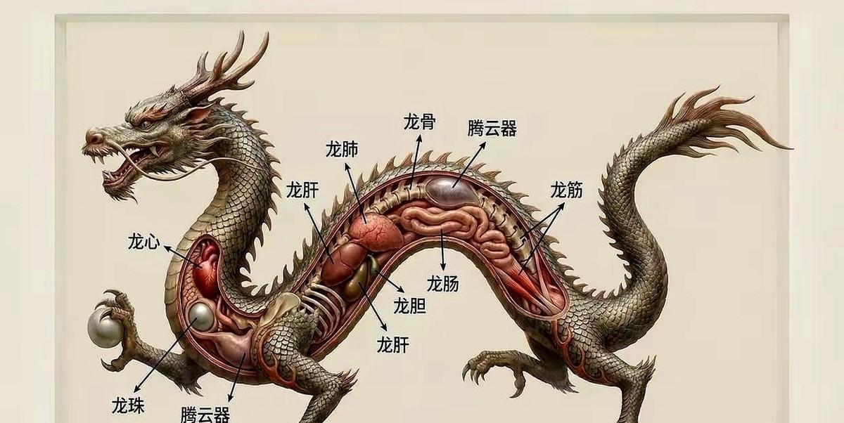 一直以为“龙有逆鳞,触之必死”是句狠话,是说帝王尊严不可犯。 直到昨晚刷到一组颠覆认知的龙形解剖图——不是卡通简笔画,是带着肌肉纹理和内脏标注的生物解剖示意图,画手在图注里写:“按《述异记》载‘龙有九似’,结合爬行类生理特征推演”。 最先抓住眼球的是“龙肝”的标注。 既不在传说中“取肝需剖腹”的腹部,也不在象征尊贵的胸腔上半区,偏偏嵌在躯干正中央,被层层叠叠的软骨包裹着,像块被厚棉絮裹住的暖玉。 这位置也太奇怪了? 食肉动物的肝脏通常靠近胃以快速代谢毒素,食草动物的肝脏偏后方便消化纤维,龙这种“食云饮雾”的生物,肝为什么要藏这么深? 手指无意识划到图的上半区,才注意到逆鳞的标注——就在前胸骨下方,一片比周围鳞片大出近三倍的菱形鳞甲,边缘呈锯齿状倒钩。 而逆鳞正下方,动脉血管像红色藤蔓般缠绕的,赫然是心脏。 以前听这句“逆鳞不可触”,总脑补成帝王龙袍上那片绣金的鳞片,谁碰谁掉脑袋。 现在看这解剖图,突然脊背发凉——那根本不是什么权力符号,是生物最原始的防御警报器啊。 你试试用针扎自己心口的皮肤,哪怕隔着衣服都会瞬间弹开吧? 龙的心脏没有肋骨完全包裹,进化出这片厚鳞当盾牌,就像乌龟的壳、刺猬的刺,是刻在基因里的生存本能。 或许有人会说这不过是现代人的脑洞嫁接? 但细看图中龙的骨骼走向——颈椎弧度贴合古籍里“龙颈如蛇”的描述,肋骨间隙预留出腾云时的扩张空间——分明是把神话生物按生物解剖学来解构。 老祖宗造神话时,是不是早就把“生存本能”揉进去了? 他们没学过解剖学,却在观察蛇的七寸、虎的咽喉后,把生物共有的“要害防护”,具象成了龙身上最显眼的那块鳞甲。 就像给“老虎屁股摸不得”找到了科学依据——老虎臀部神经末梢密集,触碰易引发应激攻击;逆鳞下的心脏,就是龙最敏感的“七寸”。 这下再读古籍里“龙怒则翻江倒海”,突然懂了那不是无端发火。 是被戳到痛处的生物本能反击,跟猫被踩尾巴炸毛没本质区别。 原来“帝王尊严不可犯”的狠厉背后,藏着的是每个生命都有的软肋。 就像我们总把“底线”挂在嘴边,原来老祖宗早用一条龙的心脏,把这道理画成了神话。