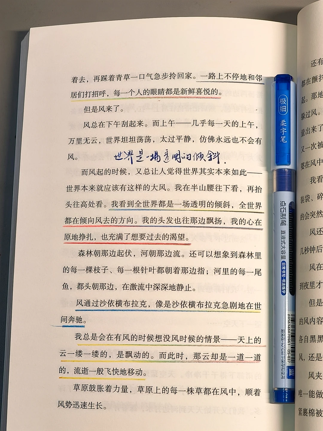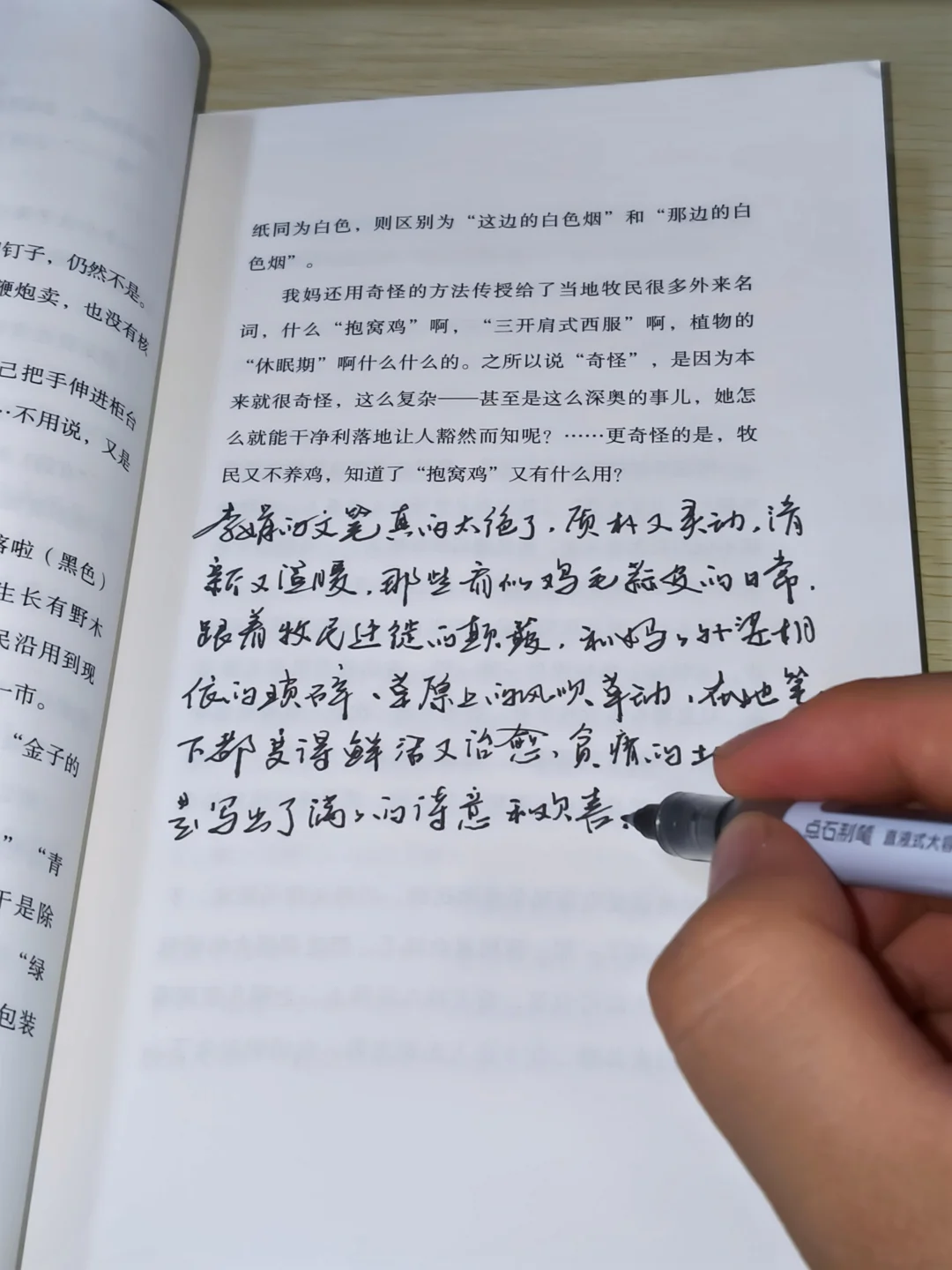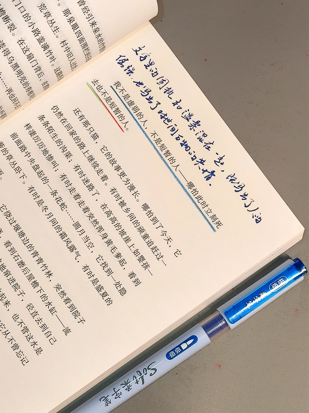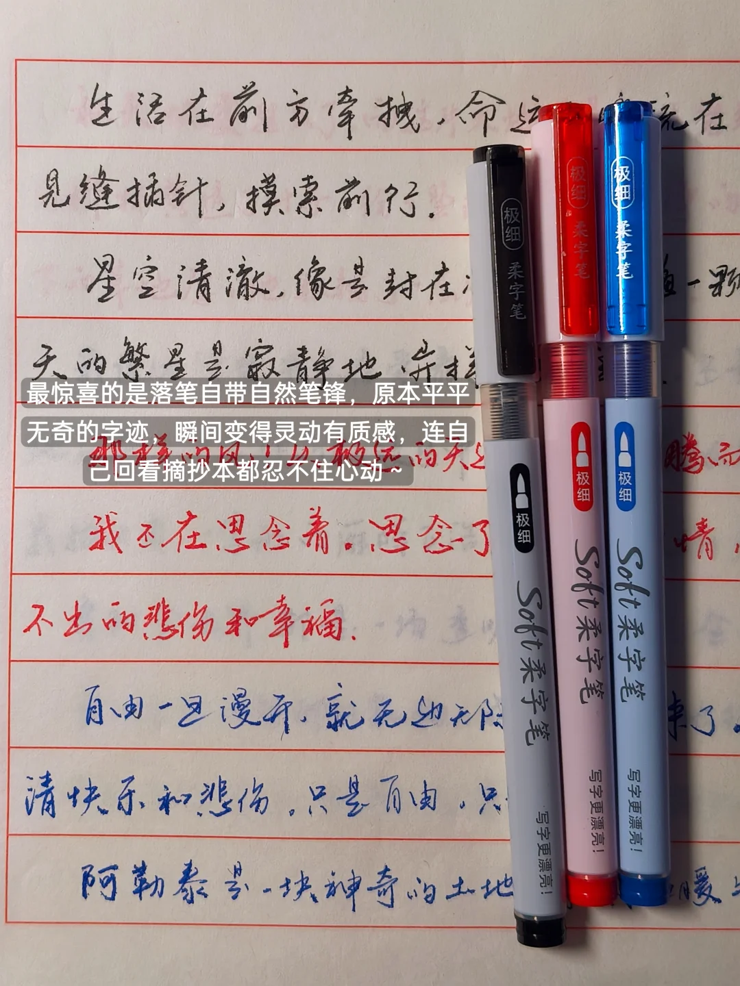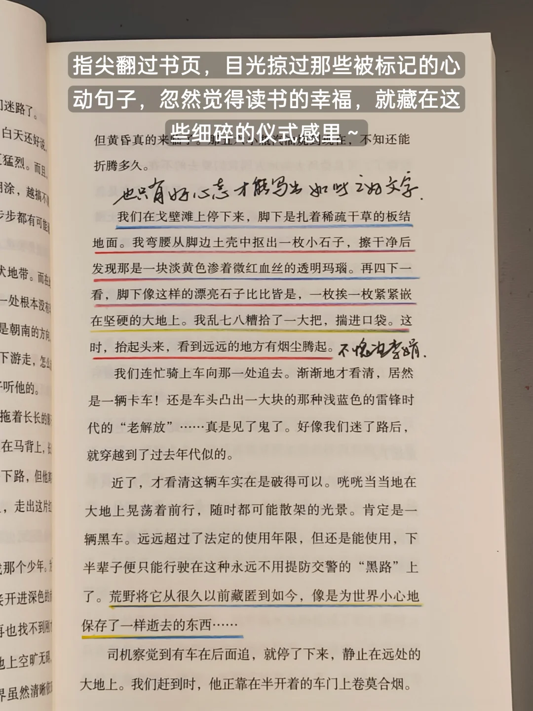 / 董宇辉说:“李娟的文字里有生命力,有对生活最本真的热爱,读她的书,仿佛能闻到草原的青草香,看到雪山的白月光”。 ㅤ 这话真的说到我心坎里了! 谁能不爱李娟啊😭, 这个把阿勒泰写活了的宝藏作家,就像阿勒泰草原上的一株格桑花🌼,她的文字我能循环读一百遍都不腻! - 之前读《羊道》系列就被狠狠圈粉,这次翻开《我的阿勒泰》,直接被治愈到原地起飞! ㅤ 她的文笔真的太绝了,质朴又灵动,清新又温暖,那些看似鸡毛蒜皮的日常,跟着牧民迁徙的颠簸、和妈妈外婆相依的琐碎、草原上的风吹草动,在她笔下都变得鲜活又治愈,贫瘠的土地里愣是写出了满满的诗意和欢喜😭! ㅤ 读着读着,我去阿勒泰的冲动直接飙到顶峰!! 想在春天奔向沙依恒布拉克草原,看鼓胀的帐篷缀在绿毯上; 想在夏天扎进牧场,听阿肯弹唱会的歌声穿透风里的青草香; 想在冬天踏上北疆白迢迢的雪路,看戈壁、森林、雪山连成一片纯净的白,和牧人、骏马一起定格成画…… 那些星空、草原、炊烟,都成了我心里最迫切的念想! / ✍️那些戳中我的神仙句子必须分享: 🌿“生活是一场漫长的迁徙,我们都在寻找属于自己的草原。” 🌿“外婆说,人活着,就是要多看看太阳,多晒晒月亮,心里就亮堂了。” 🌿“星空清澈得像倒过来的海,每一颗星子都在闪,仿佛在说,别怕,总有光亮在等你。” 🌿“痛苦会被风带走,疲惫会被阳光晒干,唯有对生活的热爱,会像草原上的花,一茬接一茬地开。” - 指尖翻过书页,目光掠过那些被标记的心动句子,忽然觉得读书的幸福,就藏在这些细碎的仪式感里~ 新入手的黑蓝红三色点石柔字笔,简直是摘抄与标记的天选搭档! ㅤ 直液式软头设计太懂书写需求,下墨顺滑不卡顿,大容量又耐用。最惊喜的是落笔自带自然笔锋,原本平平无奇的字迹,瞬间变得灵动有质感,连自己回看摘抄本都忍不住心动~ - 如果你觉得生活枯燥又疲惫,就用点石柔字笔抄写李娟的神仙句子吧!让细腻笔墨承载着阿勒泰的风与光,把那些温暖与力量一笔一划刻进心里,治愈疲惫,重新爱上生活本身。 ㅤ