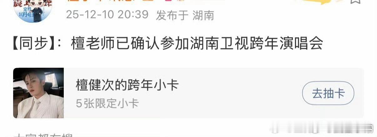 檀健次确认参加湖南卫视跨年演唱会,跨年舞台大赞!