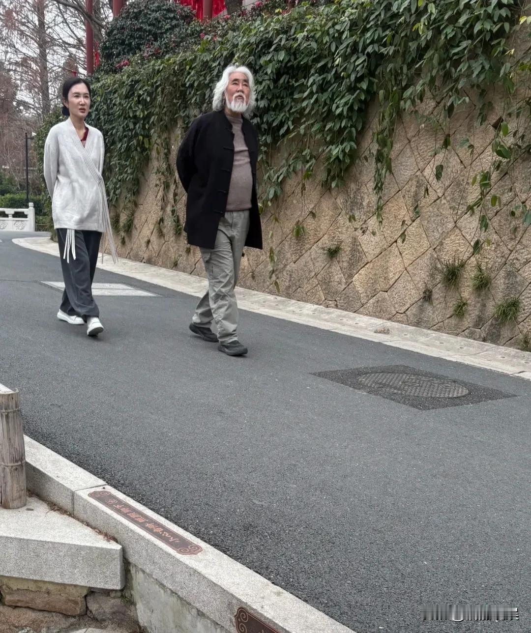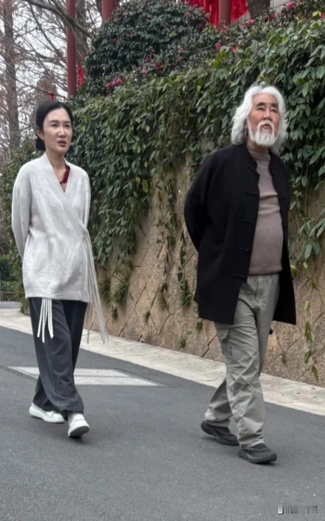 导演张纪中和夫人杜星霖现身去杭州径山寺的路上,准备去祈福。 张导身材高大,身形发福,肚腩很大,腿脚轻便。看他头发胡子全白了,没有像网上说的那样染成黑色,看着还是挺显老的。 杜星霖跟在老公后面,穿着一件白色中式搭配收脚裤,素颜看着脸有点肿,脸色憔悴。 毕竟夫妻俩差了三十来岁的年龄差,外形看着还是相差蛮远的,有隔代的感觉。 夫妻俩自从在网上与网友互怼后,现在低调多了,也很少在网上秀恩爱了。