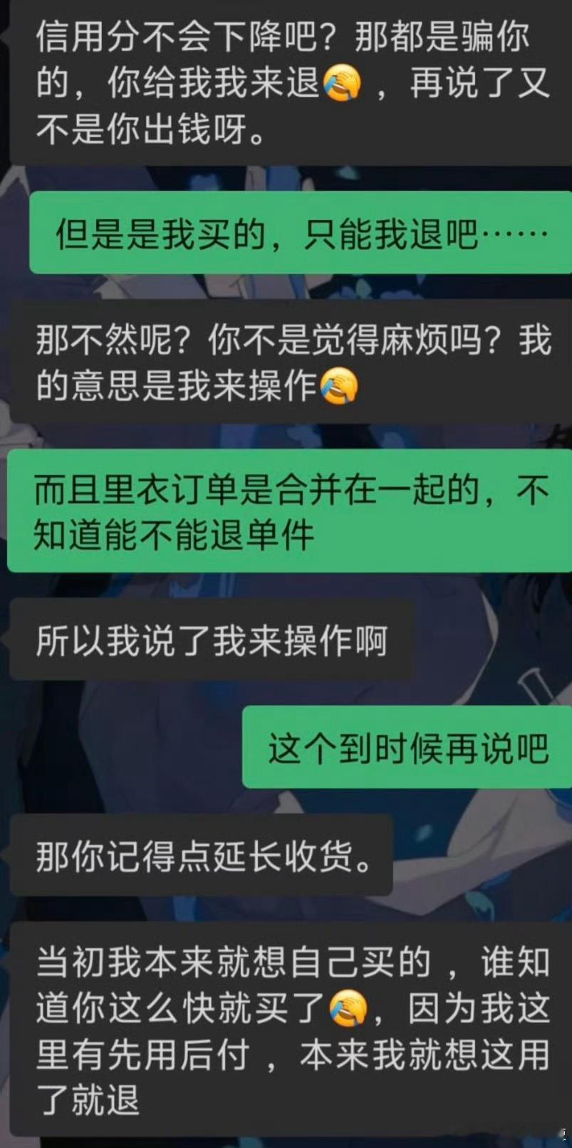 同学演完戏想把衣服7天无理由退款,但是是我的号