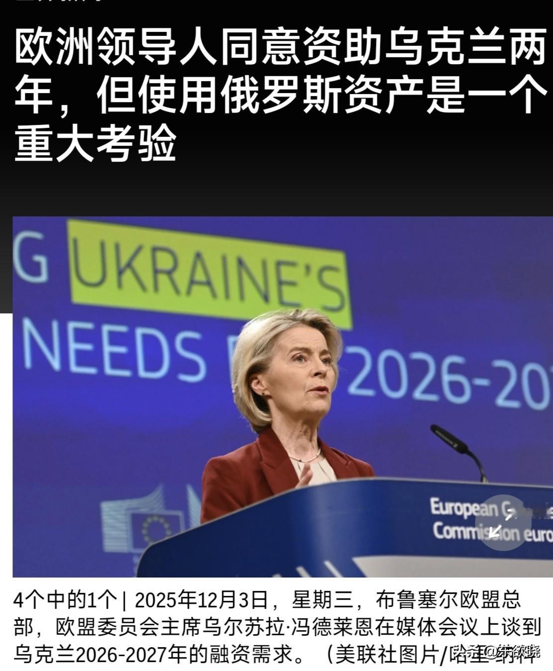 特朗普政府对乌克兰“断供”,欧洲领导人“挑担” 同意资助乌克兰两年,但使用俄罗斯冻结资产是一个重大考验 布鲁塞尔消息––乌克兰近四年的全面战争,欧洲联盟领导人承诺供资基辅未来两年的经济和军事需求,无论如何。乌克兰已经陷入绝境,2026年初需要这笔钱。 下周欧盟27国领导人将权衡是否动用数百亿美元冻结的俄罗斯资产,以帮助满足乌克兰的要求,同时国际货币基金组织投资为1350亿欧元。 这样的举措从未有过,也伴随着风险。欧洲央行(ECB)警告称,如果欧洲人愿意攫取其他国家的资金,可能会削弱人们对欧元的信心。一些成员国担心招致俄罗斯的报复。 持有大部分资产的比利时是该计划的主要反对者。人们担心俄罗斯会通过法庭或以更邪恶的方式进行反击。欧洲的机场和军事基地附近发生的一系列无人机事件表明,克里姆林宫已经在这么做了。 将主持12月18日峰会的欧洲理事会主席安东尼奥·科斯塔坚称,与会领导人在达成决定之前不应离开布鲁塞尔欧盟总部。欧盟领导人冻结了这笔资金,其中大部分是俄罗斯央行的资产,冻结理由是普京2022年2月发动战争。莫斯科称欧盟的冻结俄资产行为是“盗窃”。 提出两个方案。A计划是“赔款贷款”,使用俄罗斯的资产,直到莫斯科同意赔偿乌克兰所遭受的损失。没有人认为俄罗斯总统普京会同意支付赔款。 B计划是欧盟在金融市场上借钱,就像欧盟在冠状病毒大流行后,为大规模的振兴贷款计划的欧洲经济体。 欧洲许多主要经济体现金拮据,深陷债务泥潭。但俄罗斯对乌克兰的战争对欧盟构成了生死存亡的威胁。情报评估显示普京会在击败乌克兰后,3-5年便在其他欧洲国家发动战争。 这些资产构成了大量随时可用的现金。欧盟执行机构欧盟委员会估计,目前欧洲冻结的资产价值2100亿欧元。其中绝大部分--截至9月底约1,930亿欧元(2,250亿美元)--都存放在比利时金融清算所。 还有政治优势。如果欧盟选择使用这些资产,只需要“特定多数”国家一-大约三分之二多数一-就可以开绿灯。在金融市场借款必须得到所有人的认可,这意味着即使是一票否决票也会毁掉这个想法。 在过去的一年里,欧盟支持乌克兰的议题,匈牙利基本阻止。政府斯洛伐克也开始退缩了,捷克共和国新的强硬民族主义领导人可能会使这一决定进一步复杂化。
