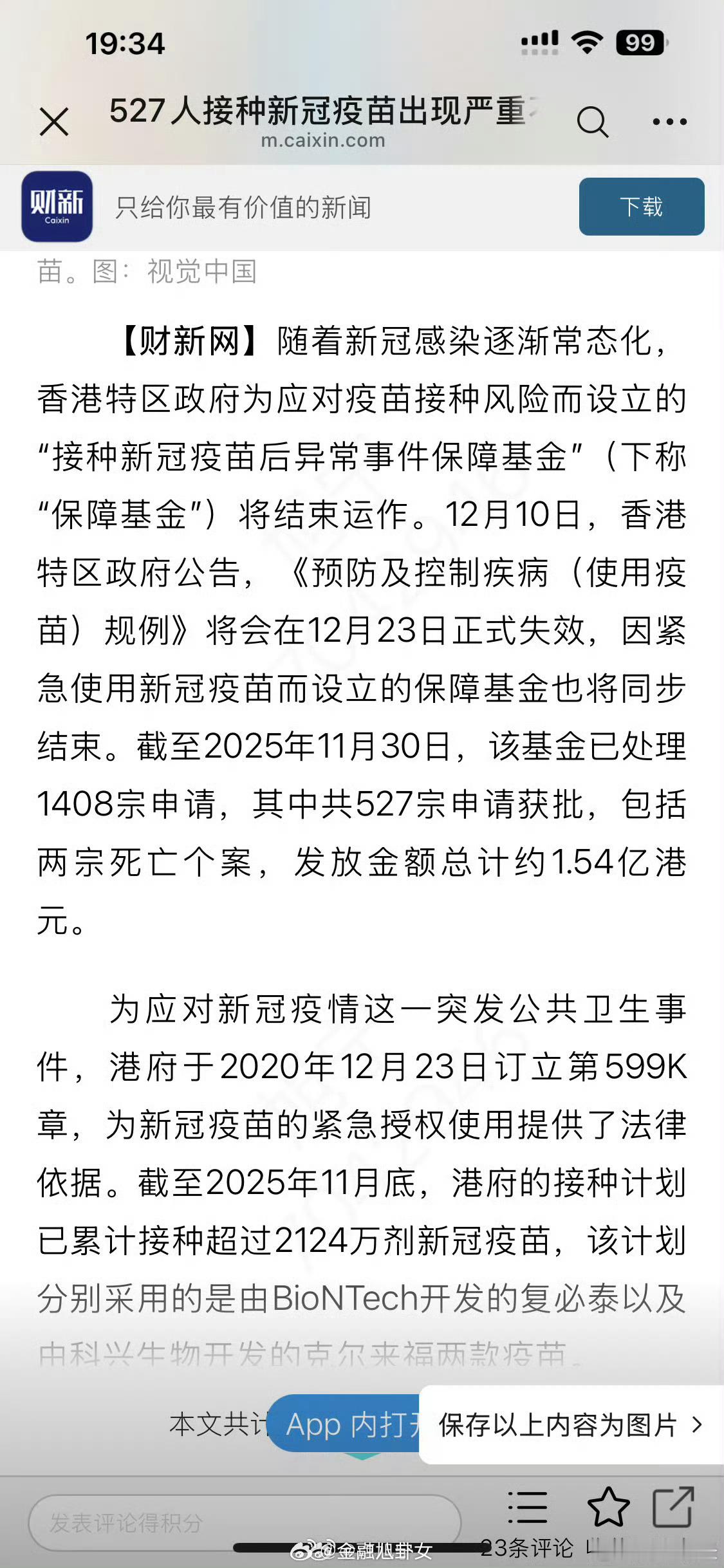 527人接种新冠疫苗出现严重不良反应 获港府基金赔1.54亿港元 (财新)