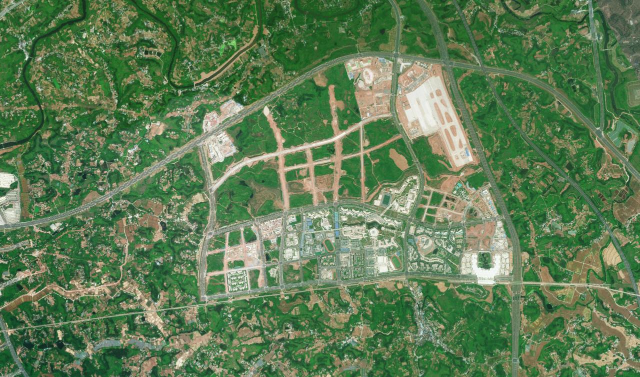 简阳市区、空港新城,简州新城的卫星地图!卫星地图包括:简州新城石盘 养马,空港新城三岔,未来科技城玉成,草池,福田,未来医学城董家埂,高铁新城, 东溪经开区,石桥电商物流园,天府机场北物流园区。