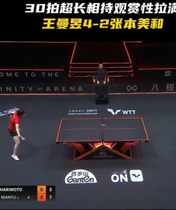 香港总决赛王曼昱和张本美和的对决太刺激了!王曼昱又双叒叕赢了,这次4比2击败张本美和,已经是她第九次战胜对手,“曼昱魔咒”实锤。 比赛里张本美和也有亮点,第三局搏杀扳回一局,第五局还5比0开局。但到了关键分,王曼昱反手拧拉和坚固防守让张本美和干着急。有个回合两人反手对攻三十多板,解说直接惊呼“我的天呐”,观赏性直接拉满。王曼昱准备超充分,战术安排针对张本美和反手长球。哪怕张本美和反手速度快,王曼昱靠身材和护台面积,中远台反拉稳稳的。张本美和变策略也没啥用,王曼昱正手对攻照样出色。这比赛真是太精彩了!