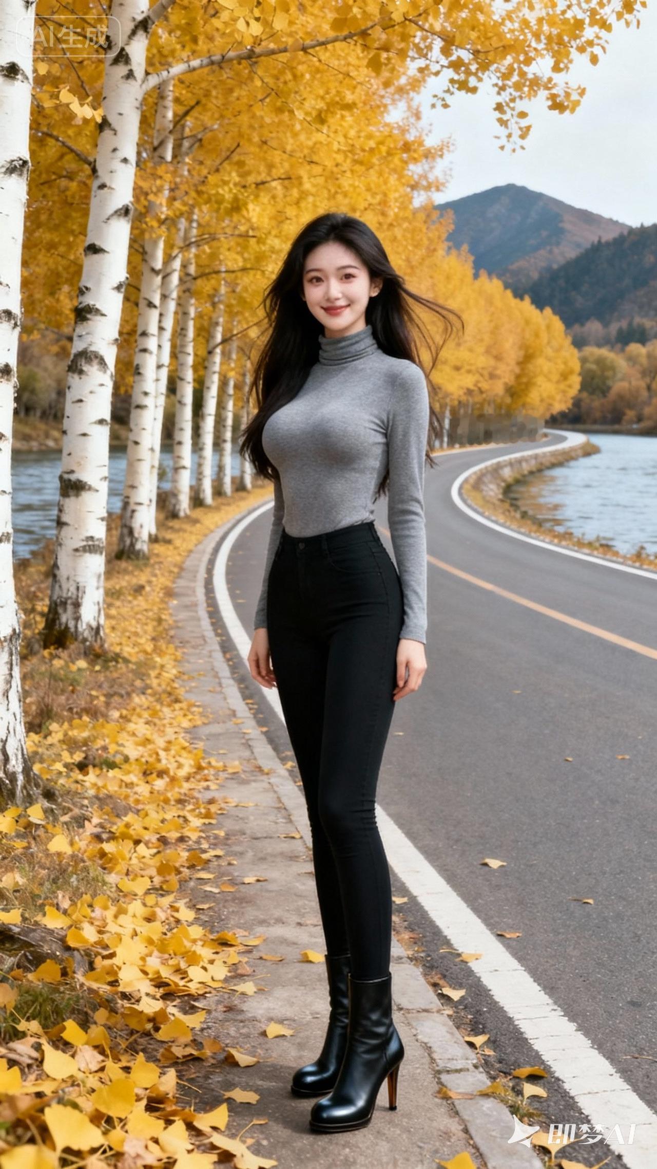 秋间素影风裹着桂香漫过公园长椅,她立在一地金箔似的落叶里,像把秋阳裁进了素