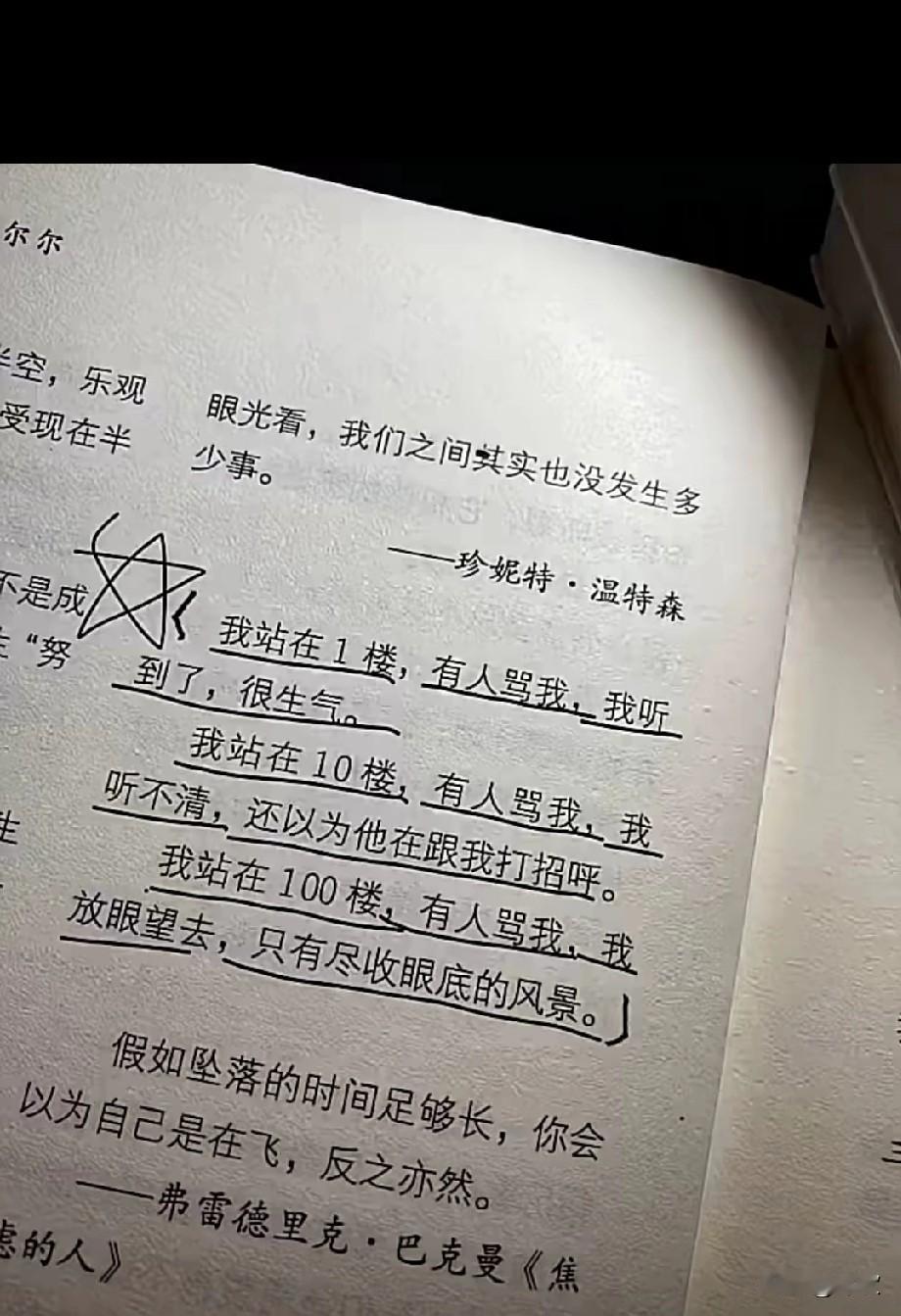 很治愈的一段话我站在1楼,有人骂我,我听到了,很生气。 我站在10楼,有人骂我,我听不清,还以为他在跟我打招呼。 我站在100楼,有人骂我,我放眼望去,只有尽收眼底的风景。这段话治愈了我莫和别人去诉说我在楼下看风景 我在楼在 治愈 格局