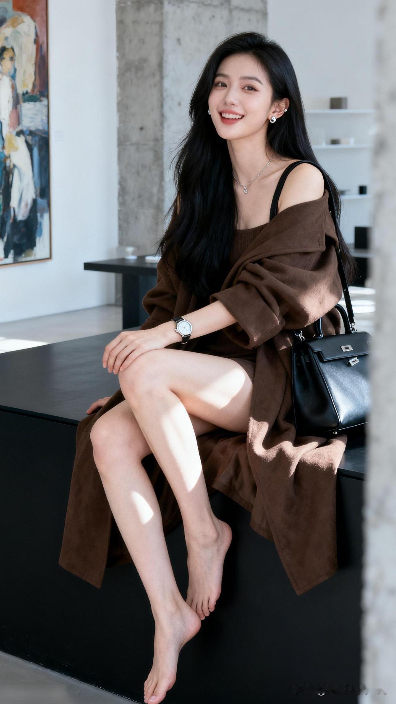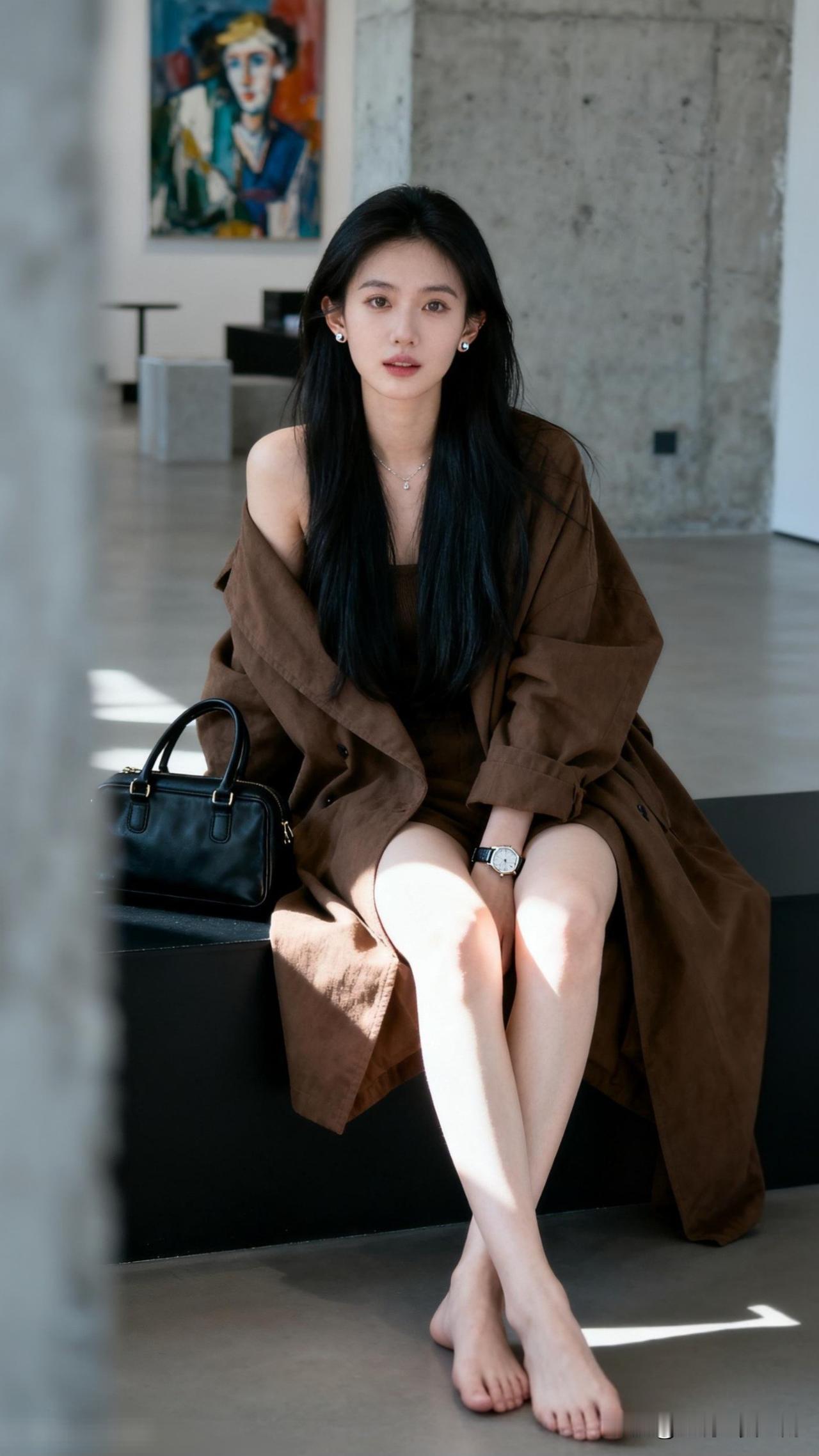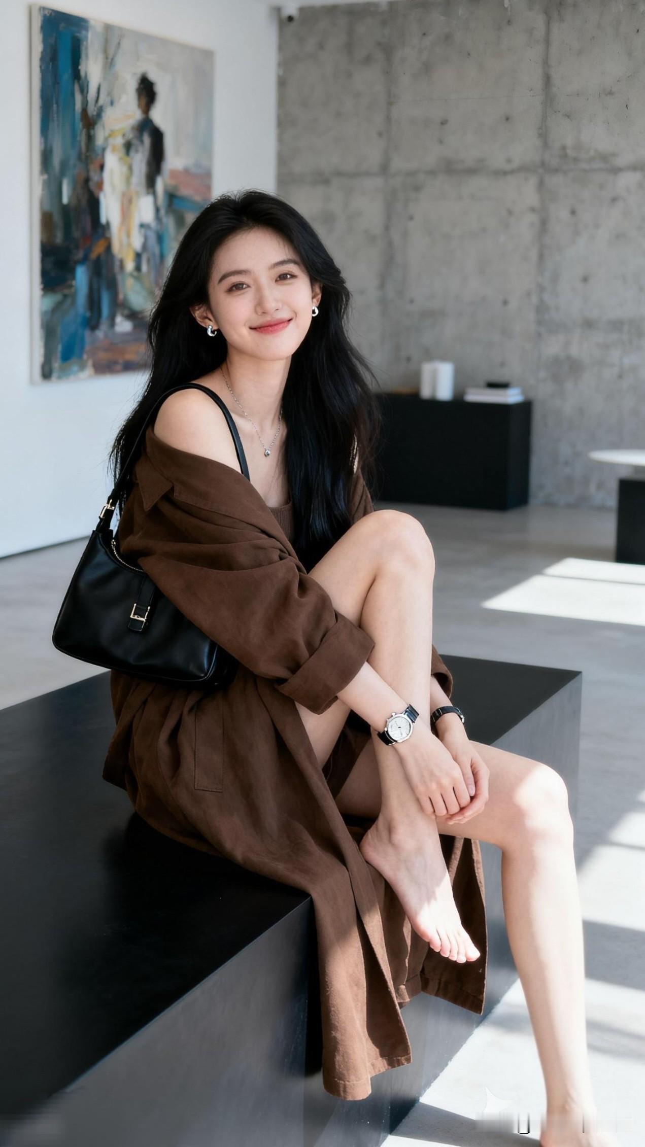 阳光洒进艺术馆,那画面美得像一幅油画。黑发少女轻倚长凳,双腿交叉,身着棕色连衣裙,搭配黑色手提包,简约又时尚。 棕色连衣裙真是个宝藏单品。它不像黑色那么冷峻,多了份温婉典雅。修身设计让少女更显温柔优雅,无袖款式又减轻了沉闷感,日常穿也有休闲慵懒的氛围。她搭配的黑色链条单肩包,长度到腰部以下,拉长了身形。黑色与棕色搭配,温婉又优雅,链条包还增添了精致感。这少女在艺术馆里,就是一道独特的风景线。
