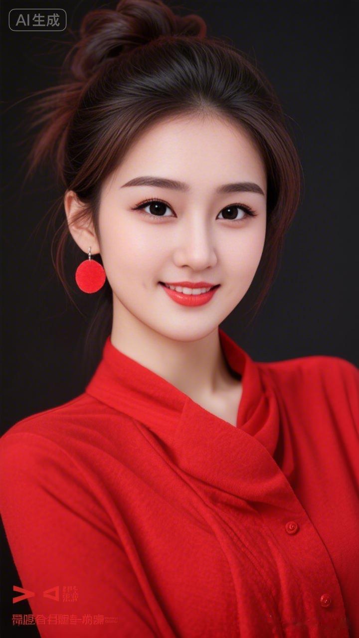 甜美红衣少女,微笑动人,时尚耳环点缀,完美妆容,尽显青春活力!💄👗💃