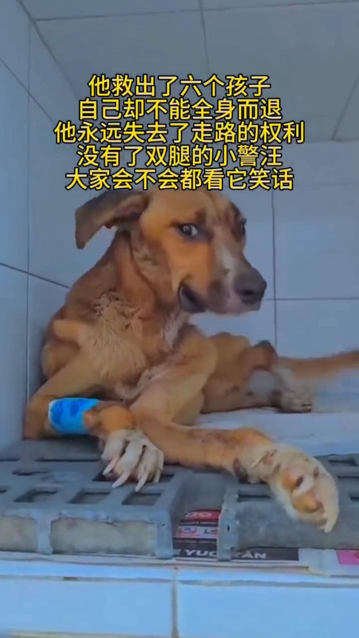 他救出了六个孩子,自己却不能全身而退。他永远失去了走路的权利,没有了双腿的小警汪,大家会不会都看它笑话?