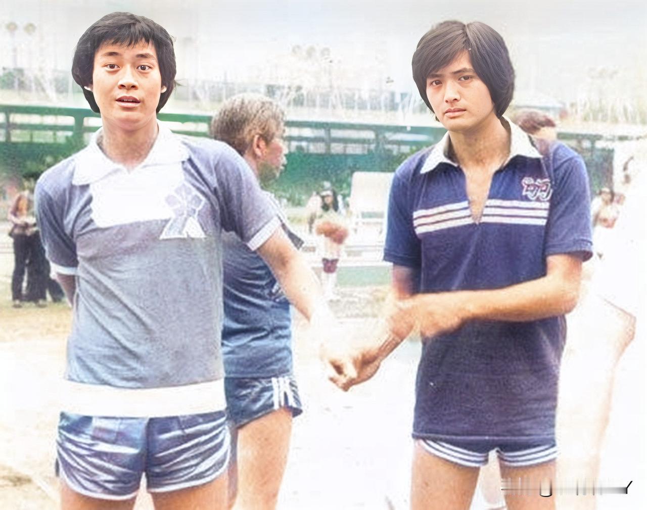 这是郑少秋与周润发年轻时一同参加节目时的一张老照片,拍摄于上世纪七十年代。彼时秋官与发哥风华正茂,真是惊艳了时光!