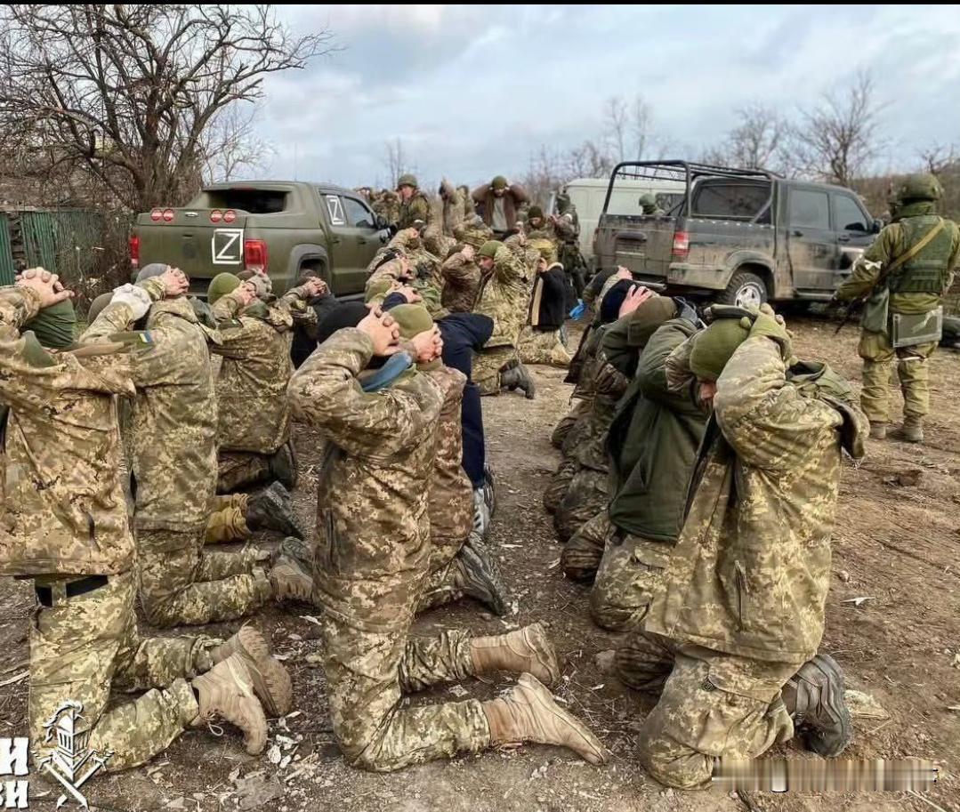 俄军在米尔诺格勒收网行动!一大群乌军被包围后,面对弹尽粮绝的局面,主动向俄军缴械投降保命! 乌军投降规模人数非常庞大,乌军俘虏集中跪在一起双手抱头,等待俄军运往后方审问! 俄军也算仁慈了,接受了这群乌军的投降请求,没有扔航空炸弹轰炸或者当场处决了他们!给了他们活命的机会。 这群俘虏当中,不知道有没有外籍雇佣军,如果有的话很难活着,要么去西伯利亚种土豆,或者面临牢狱之灾。