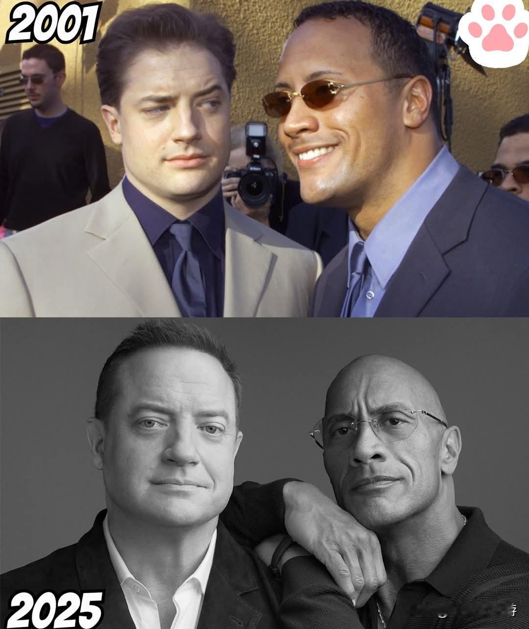 巨石强森和布伦丹·弗雷泽 从弗雷泽在《木乃伊归来》中给巨石强森第一次放电影的机会,到约翰逊后来在《鲸鱼》中帮助弗雷泽复出,这两人几十年来一直相互扶持。 布伦丹·弗雷泽 鲸鱼