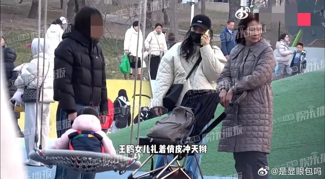 王鸥带两岁女儿公园荡秋千,带娃显生疏,妈妈随行不满她总看手机!!!