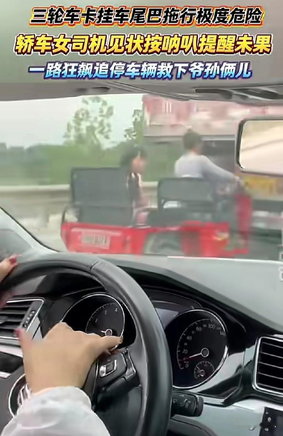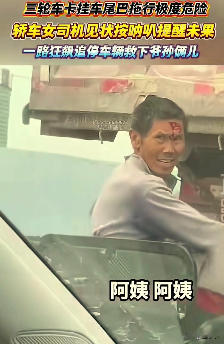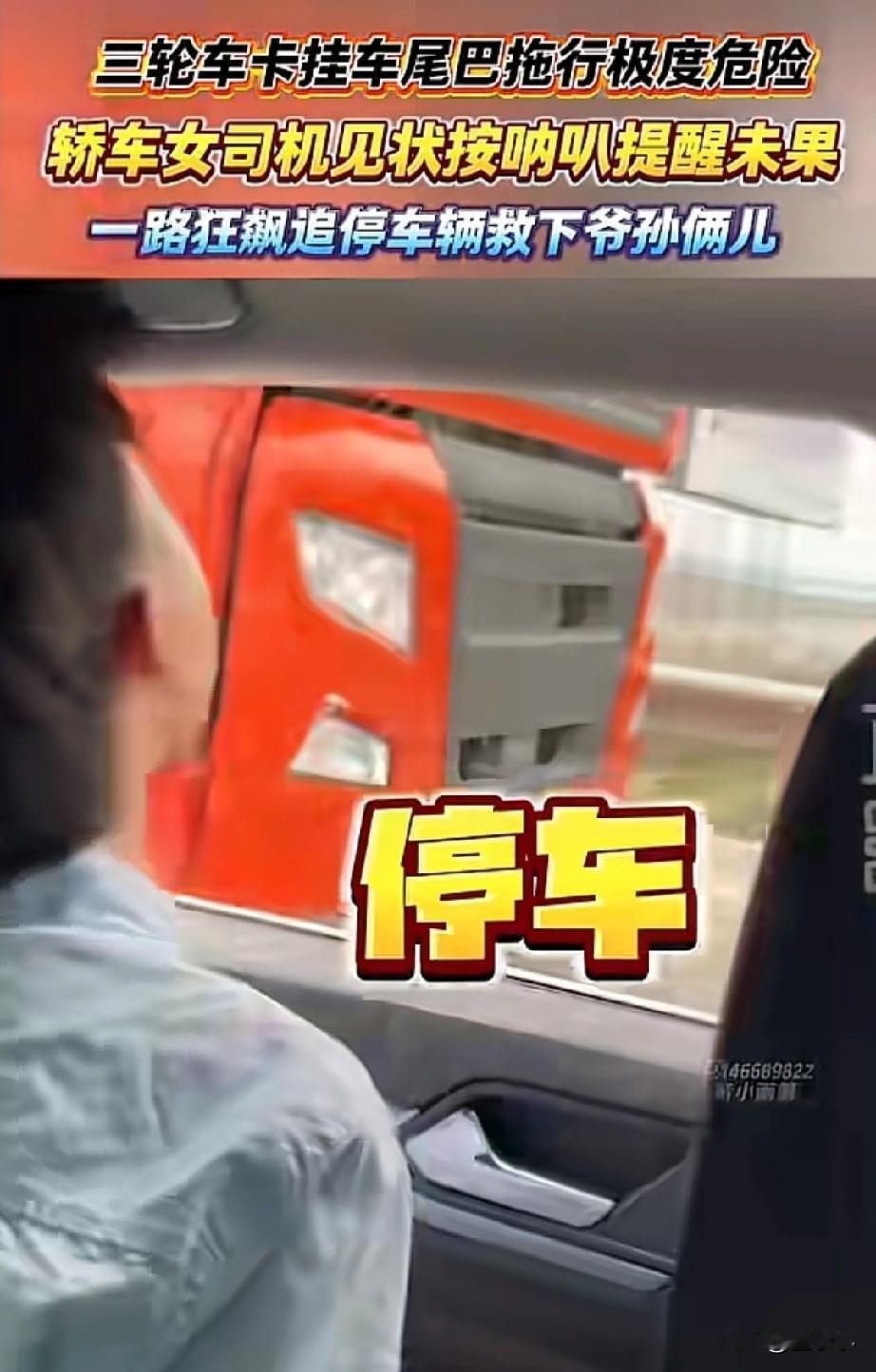 救命啊!救命啊!三轮车卡在挂车后面被拖行,小女孩拼命的向路人求救,女司机见状后一句狂追逼停了货车救下了爷孙两个人。 女子正在行驶中,突然就听到有人喊救命,一辆大货车刚擦身而过就看到了一位老人骑着三轮车被卡在货车后面。 车上的女孩拼命的求救,而老人头上还流着血那无助的眼神也寄托在女子的身上。 女子快速追上招手让货车司机停下,起初货车司机并没有听清楚没有停下,眼看爷孙俩被拖行越来越远,女子踩了油门一路狂奔逼停了货车司机,爷孙俩这才得救。 可想而知,当时爷孙俩得有多绝望和害怕,那一刻老人和女孩把所有生机都寄托在女司机身上了…… 很多网友觉得,大车出厂必须有360度无死角摄像头,包括车底,并能在操作台显示车辆周边状况,这样就能会及时的发现问题和危险情况,也能避免掉,不是吗? 大家觉得呢?