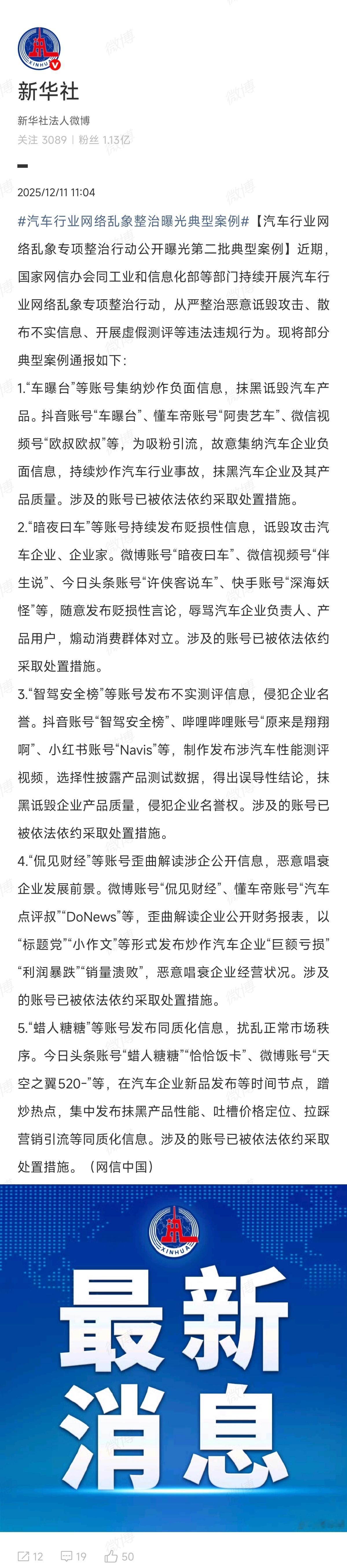 网信办公布的这份名单里,又看到几个熟悉的名字。翔翔啊,深海妖怪啊,当初黑起车企,那叫一个不遗余力。