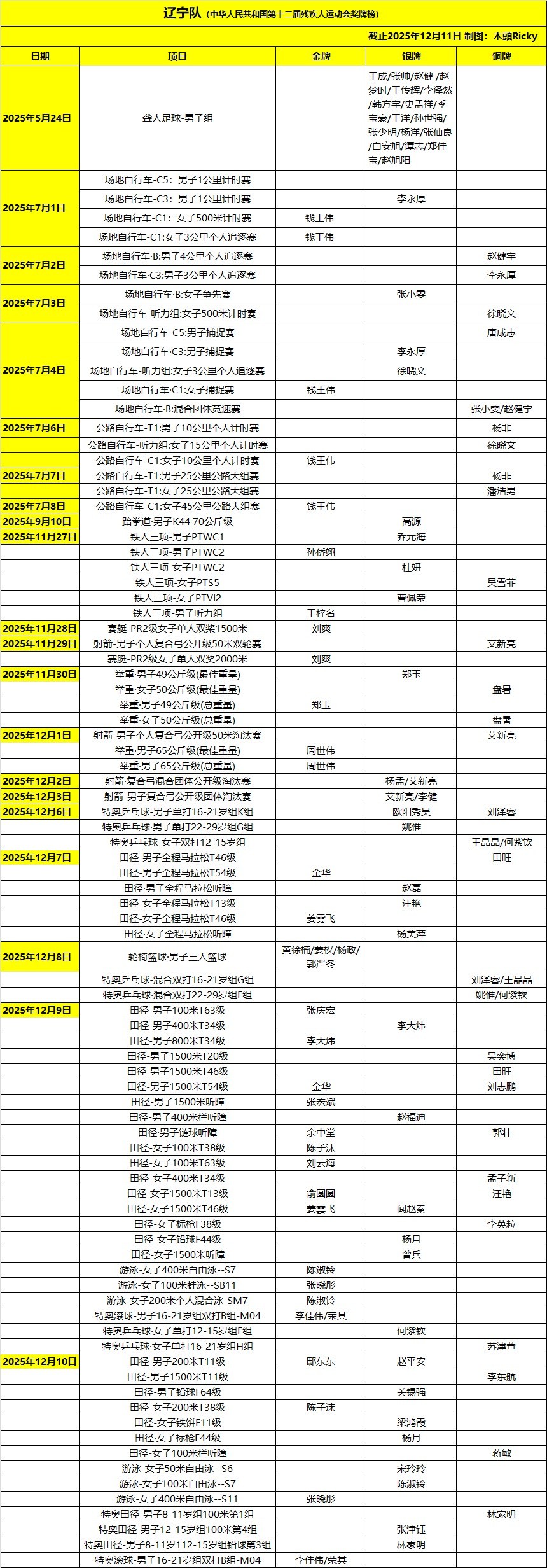 2025残特奥会全国第十二届残疾人运动会暨第九届特奥会辽宁队奖牌榜。 体育大赏