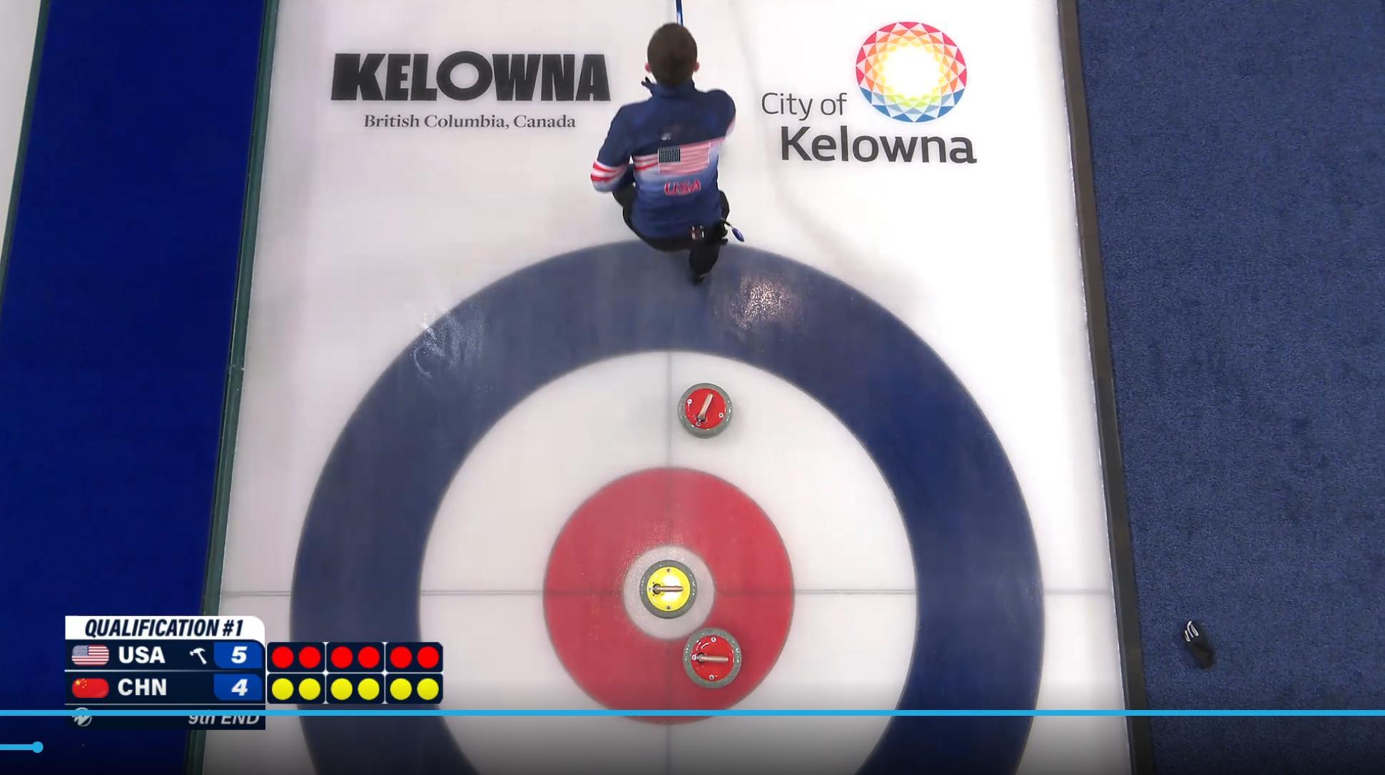 美国队今天打中国真有自己的套路,一垒第一个壶全都在布低区占位,接着第二颗占死大本