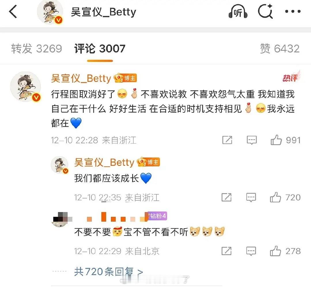 吴宣仪训粉又上热搜了,这次是因为吴宣仪发文说应该保持一些距离,取消行程图好了。印象里好像不止一次这种发言了。🤔吴宣仪 训粉