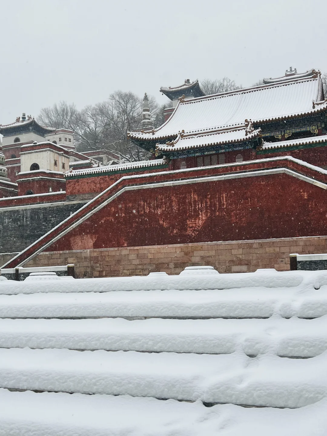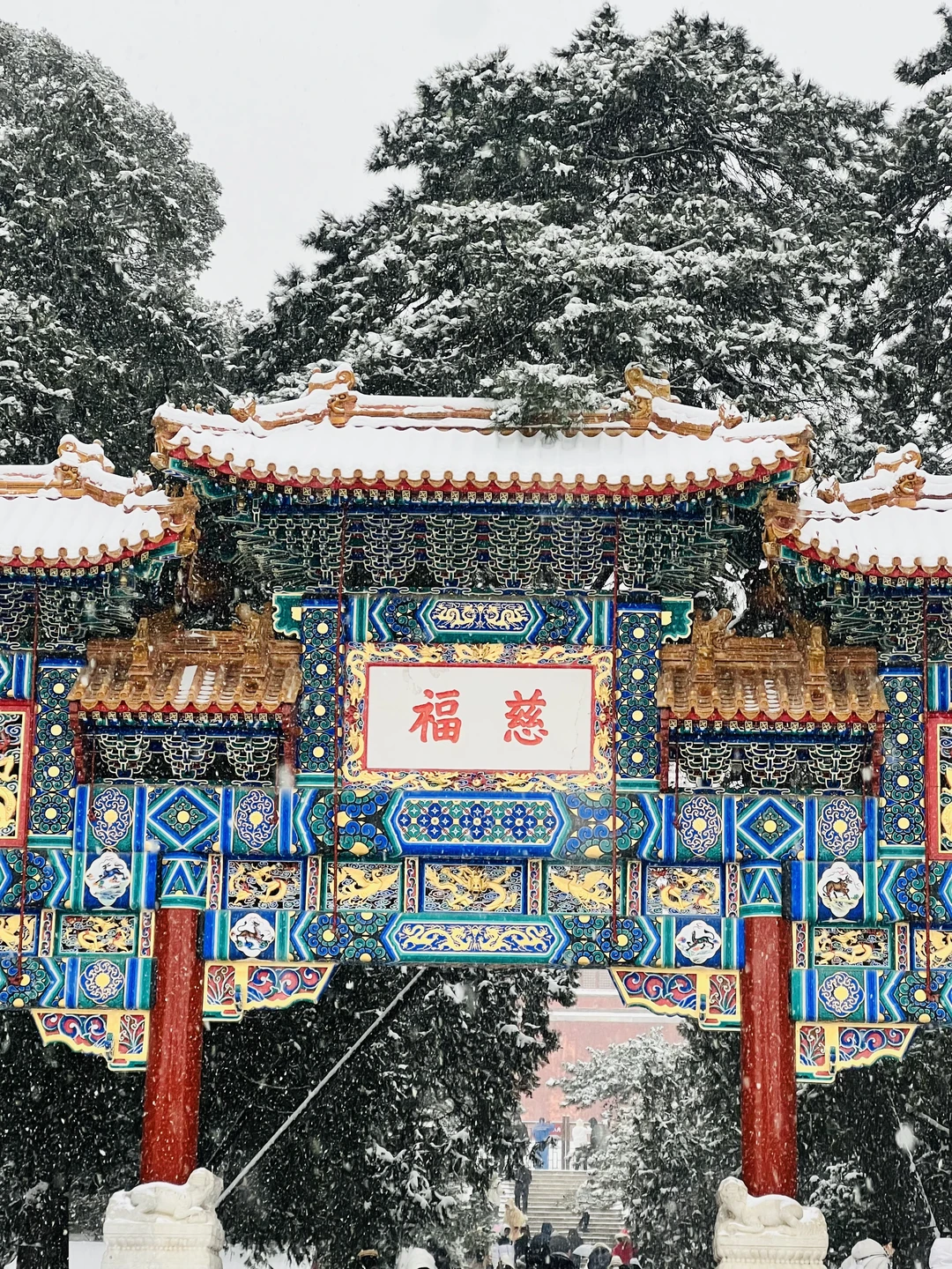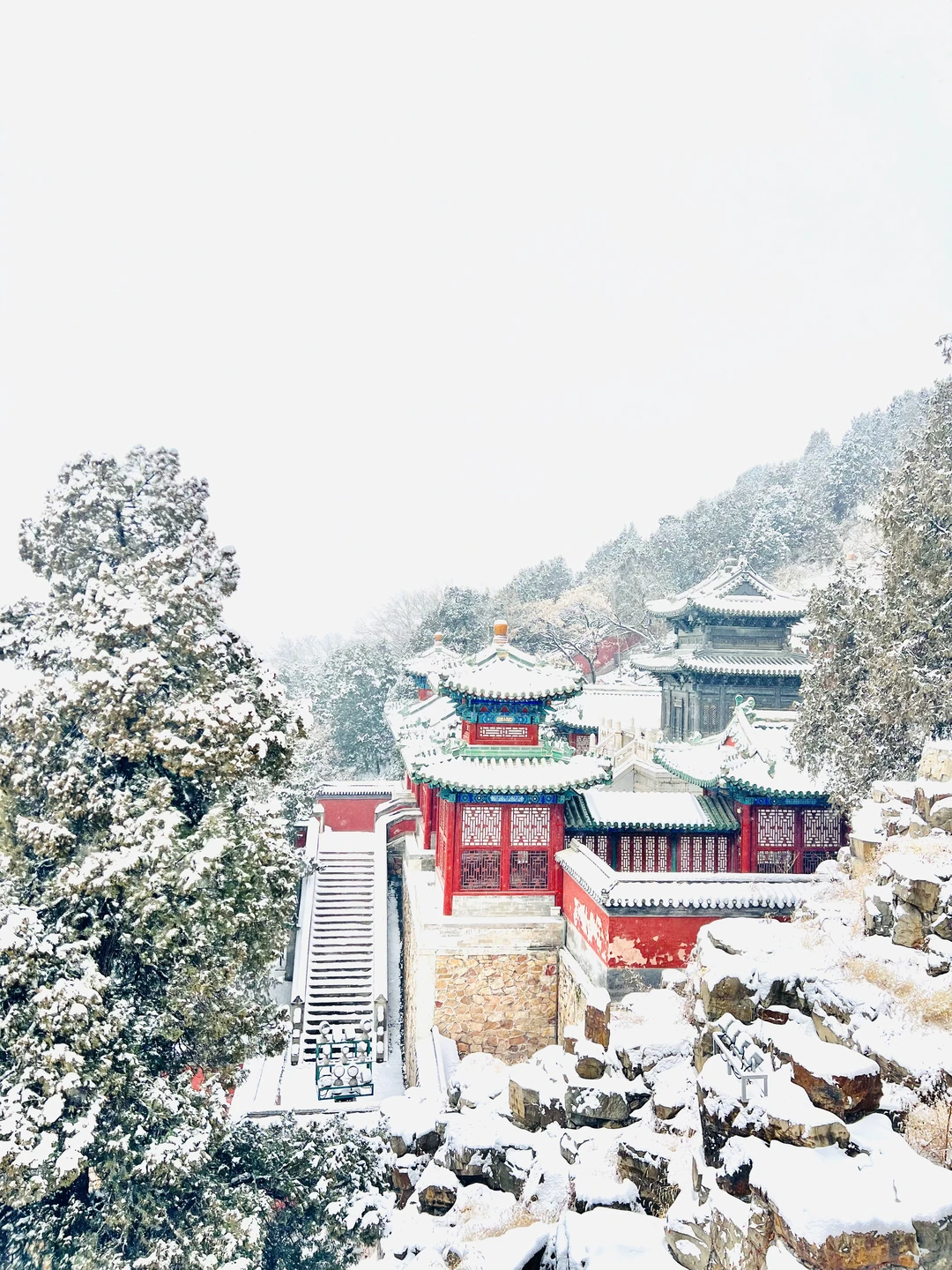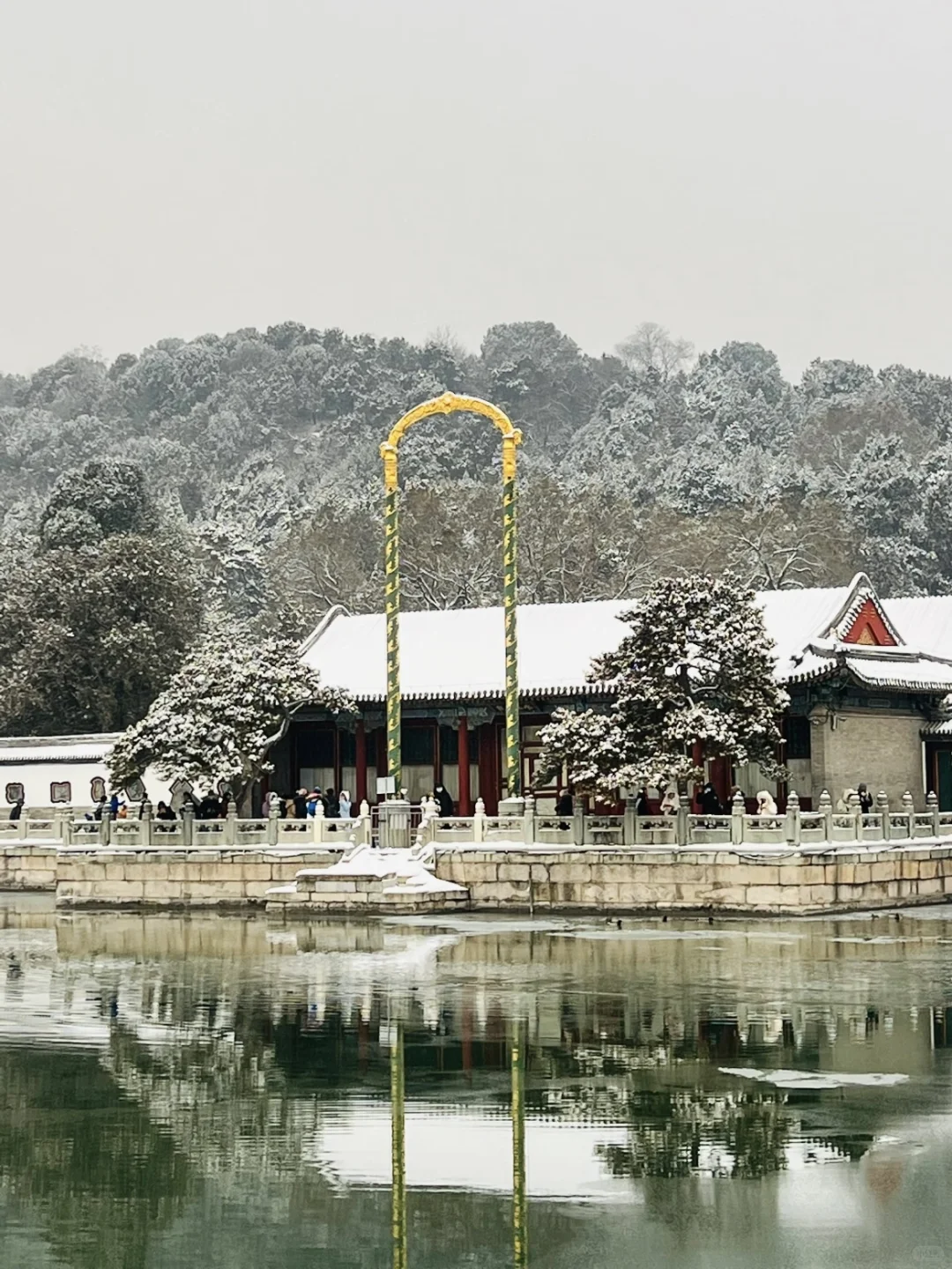 这周五北京初雪将至❄️ 冬天的正确打开方式 是在颐和园看一场北平的雪 宫墙堆雪,亭台覆白 廓如亭的飞檐挂着细雪流苏 昆明湖的冰面映着白茫茫的天 像从《千里江山图》里裁下的冬色 📌路线建设(P18) 北宫门->苏州街->四大部洲->画中游->长廊->佛香阁->十七孔桥->新建宫门 👉建议穿浅色大衣/汉服来 走在雪地里像从旧时光里走出来的人~ (温馨提示:路滑记得穿防滑鞋!)