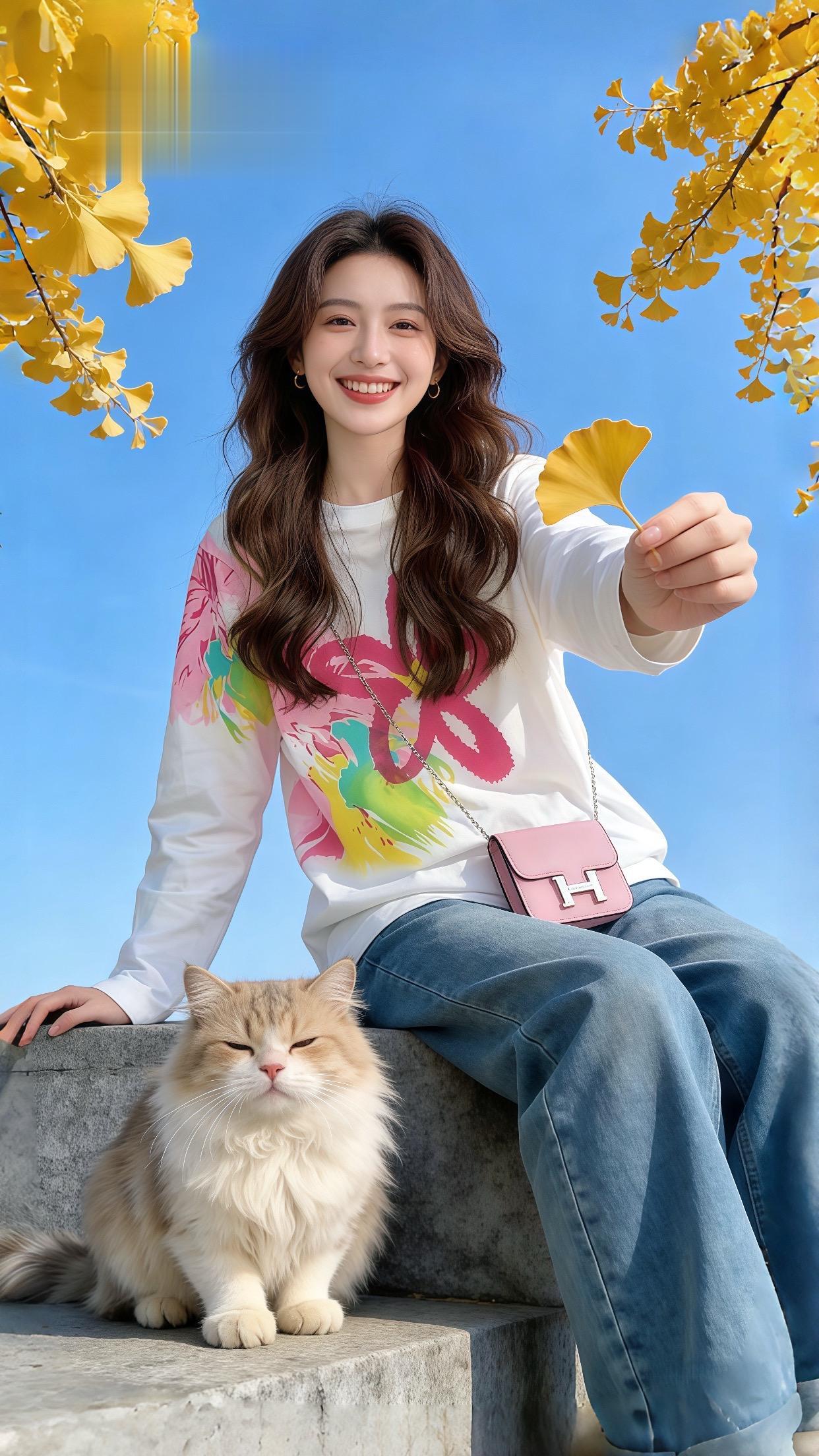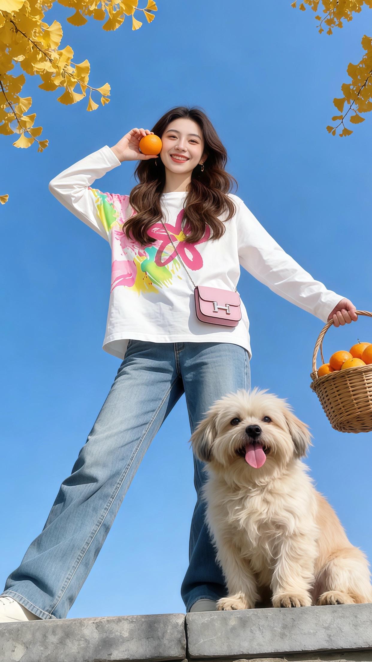 与秋冬暖阳超适配的松弛感穿搭来啦~白长T印满撞色花绘,软乎乎裹着随性松弛;浅蓝阔腿牛仔坠着轻透春味,风裹着发梢摇晃,连小狗都忍不住蹭这份鲜活——日常出街也能甜得好亮眼!