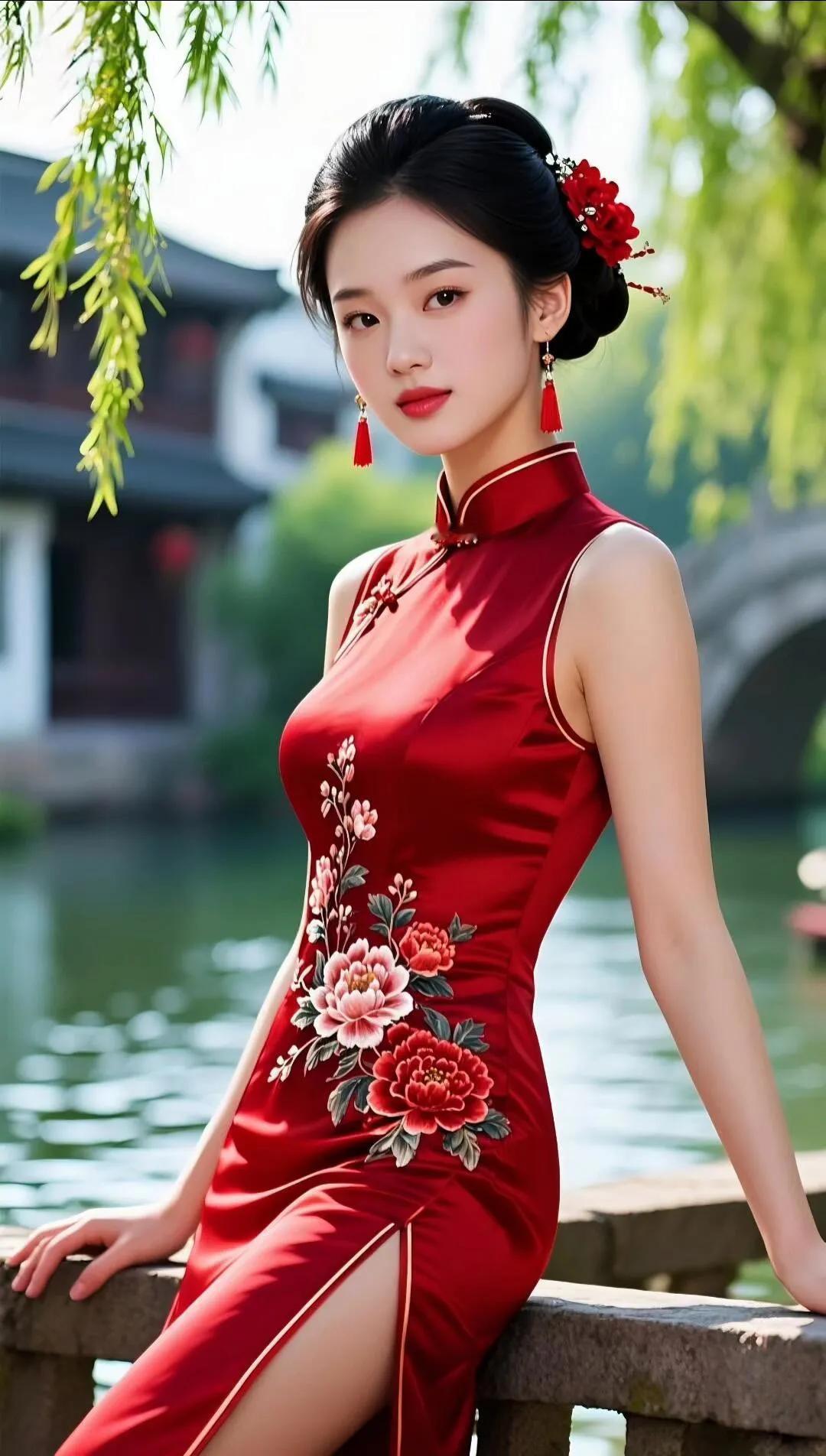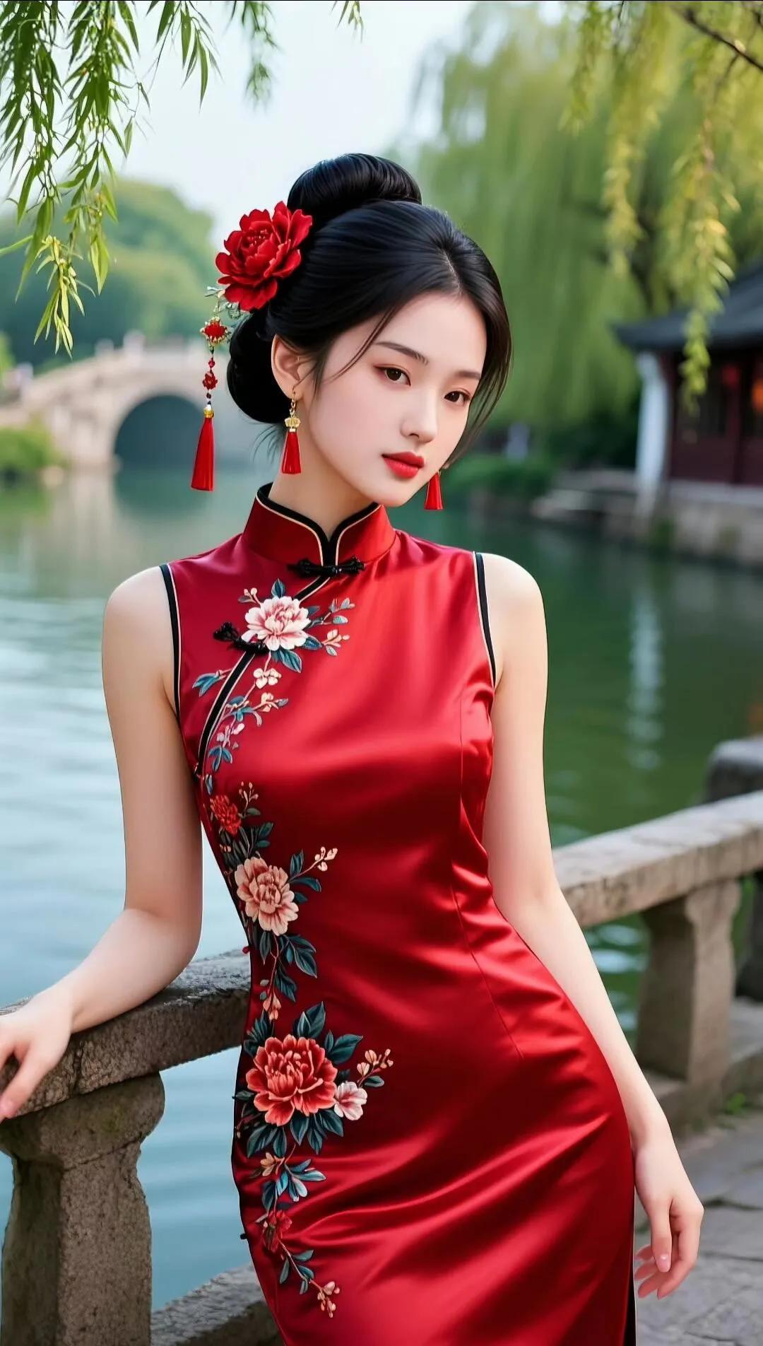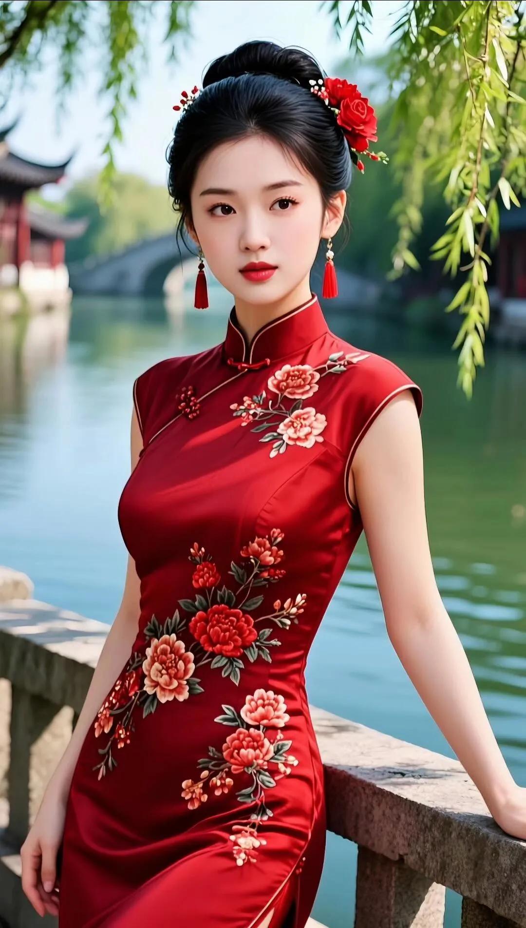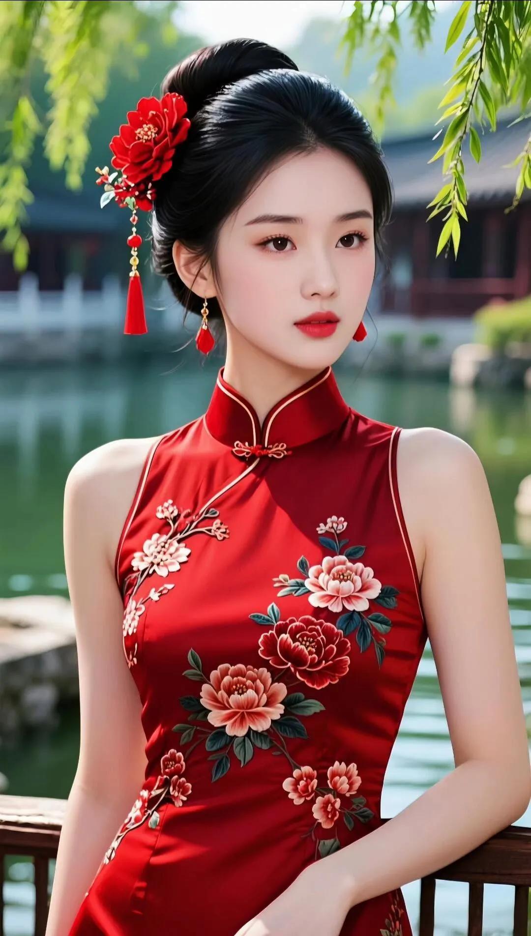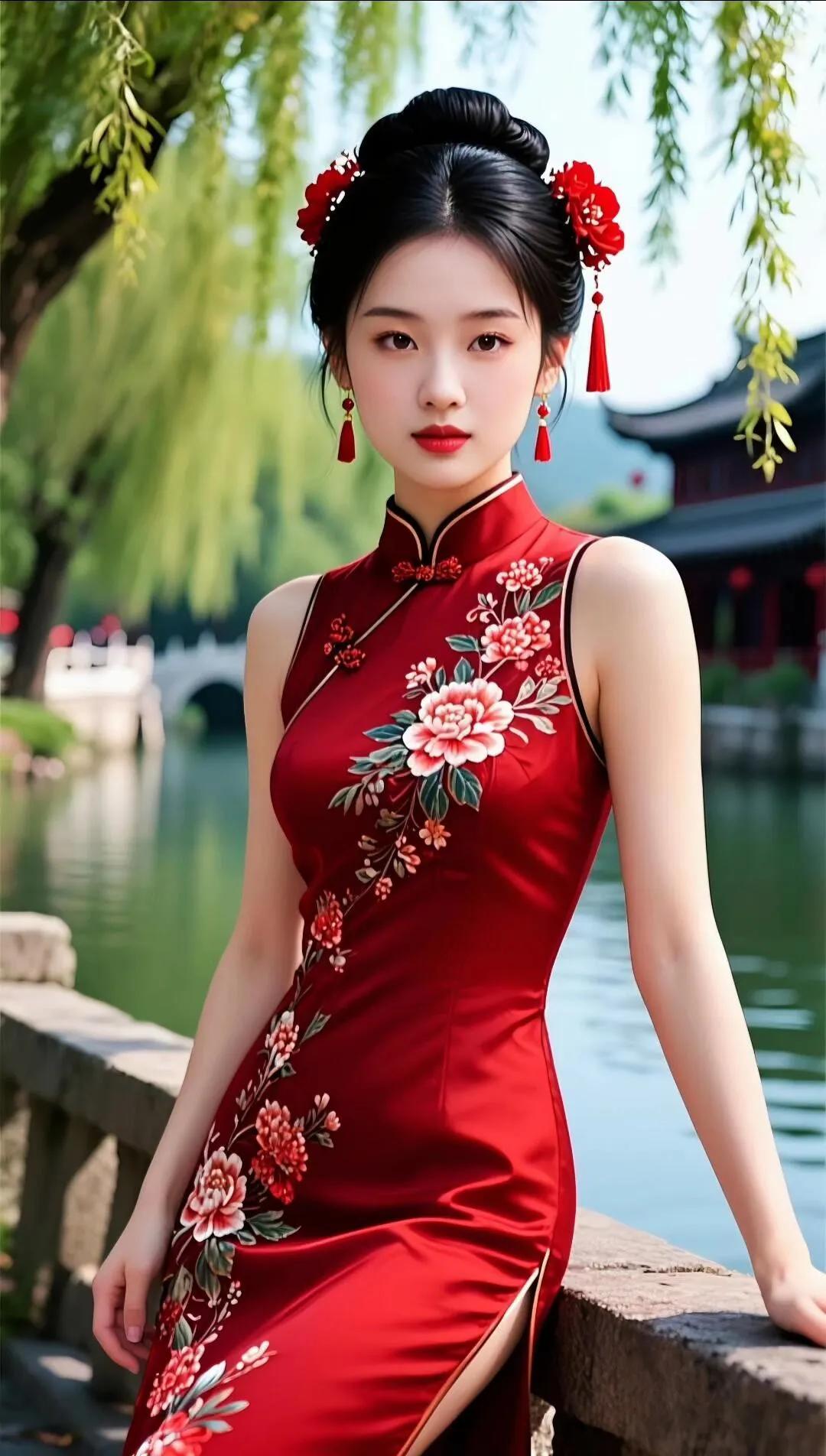 湖畔美人倚栏杆,春风吹面笑语闲。美少女美景分享