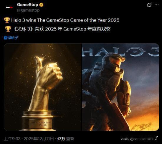 近日,GameStop宣布将举办首届GameStop大奖,该奖项的颁奖典礼现已落下帷幕,其中最引人注目的是两个奖项:年度最差游戏和年度最佳游戏。 年度最差游戏是任天堂配合Switch 2一同推出的《Nintendo Switch 2秘密展》,该游戏本质上更接近机器的“引导说明书”,但由于售价10美元且内容略显混乱而饱受诟病。 年度最佳游戏则颁给了2007年发行的《光环3》,官方在颁奖词中表示“《光环3》连续18年荣膺年度最佳游戏”。别担心,评论区和你一样困惑。 除此之外,本届GameStop大奖其他有意思的奖项得主还包括: 年度最佳回归游戏:《堡垒之夜》 年度最佳恐怖游戏:《寻找伪人》 年度最佳任天堂游戏:《咚奇刚:蕉力全开》 年度最佳PlayStation游戏:《光与影:33号远征队》 年度最佳Xbox游戏:《光与影:33号远征队》 年度最受期待游戏:《GTA6》