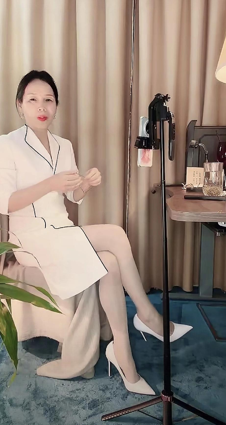 优雅职场女性,黑色套装搭配高跟鞋,尽显干练与魅力,现在退休了来直播可以吗?细高跟鞋穿搭 高跟鞋 大长腿