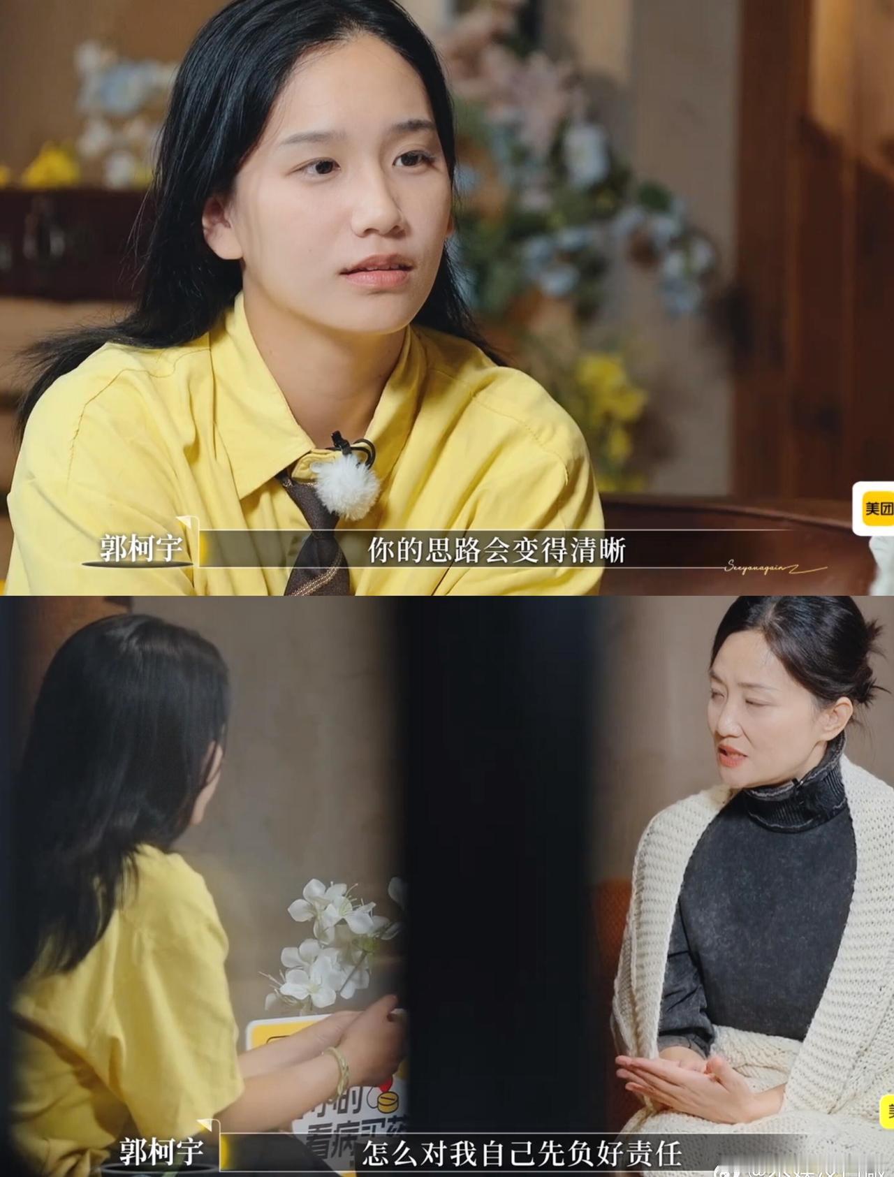 郭柯宇何美延这段太好品了! 在《再见爱人5》最新一期节目中,郭柯宇作为反场嘉宾,对何美延的问题进行了一番真诚的开导。 当何美延苦于自己经济上依赖梁淞,没有话语权和地位,甚至觉得自己配得感很低,没有朋友和家人,吵架了没有地方去时。 郭柯宇给出了的这段真诚表达,真的太有魅力了! 她说:“我甚至晚上会把自己吓醒,会担心我赚不到钱,房租的问题,孩子的学费,每月的基本开销,会觉得我的年龄,做演员重新离婚再出来有可能不是特别有优势”。 她说的这些问题,我相信何美延都感同身受。 但同时,郭柯宇又说了:“经济一定不是最困住我手脚的一个部分,我没有先找事业,我想先找的是自尊,如果你都没有自尊,你哪来的自信,你怎么可能找回你的事业?你要先尊重自己,才能重新出发……” 不得不说,郭柯宇此刻的人格魅力达到了巅峰。这段真的太好品了!!! 再见爱人超话