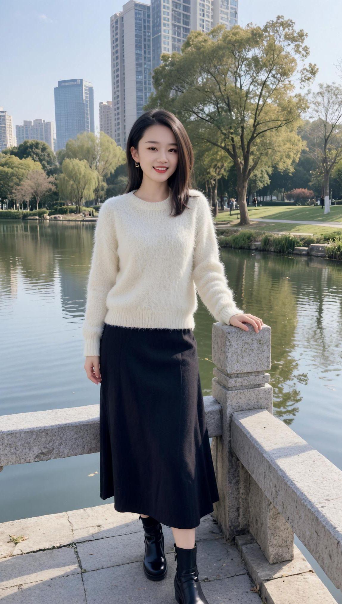 AI都市河畔照 秋冬穿搭 热门 抖音ai创作
