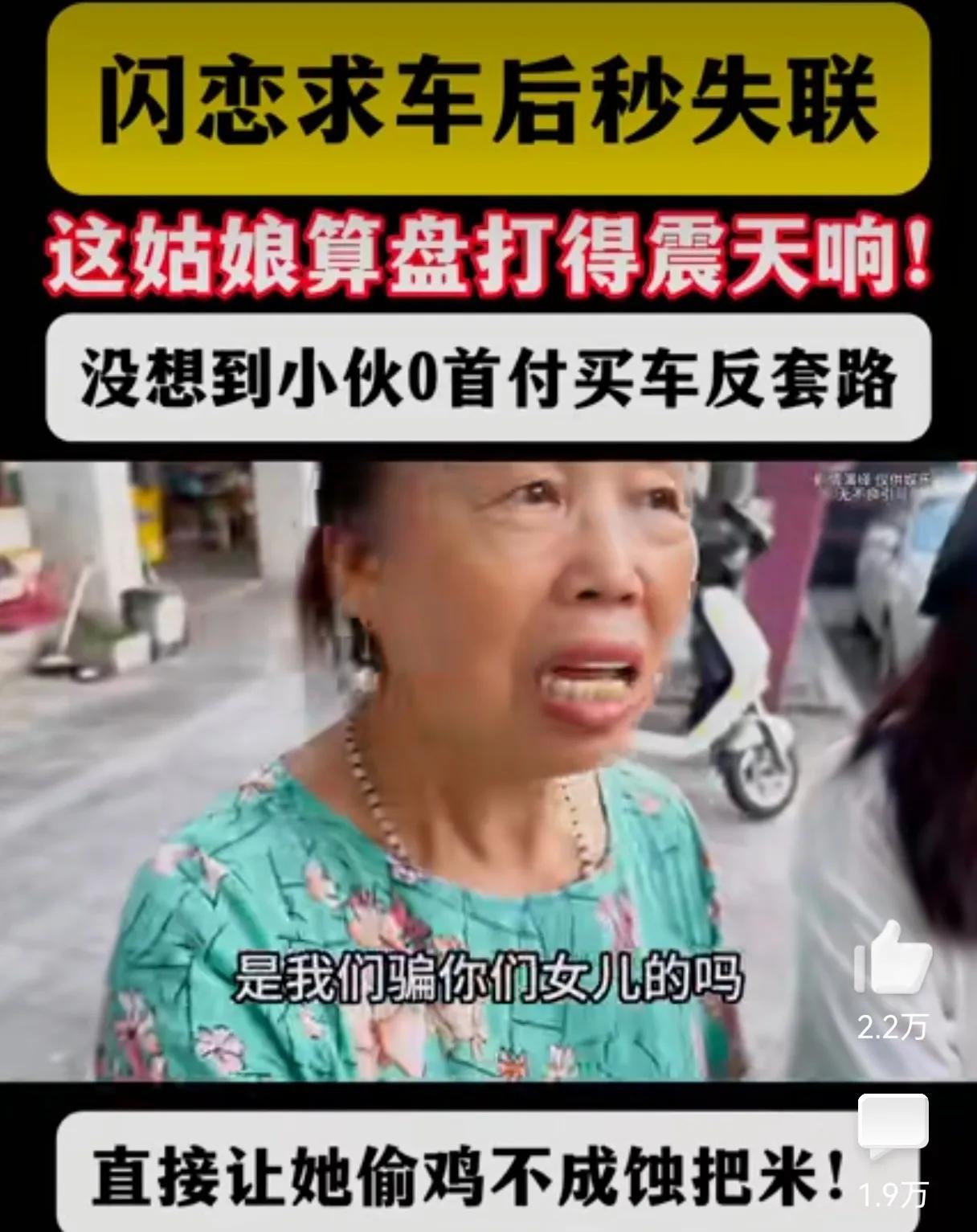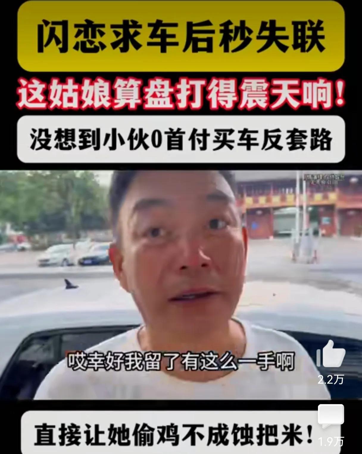 姜还是老的辣,让骗婚的姑娘防不胜防! 姑娘和小伙谈对象,不到一个月就要求买辆车,说彩礼也不要,三金四金的也不要,就买辆车就结婚,小伙就信了,就真给姑娘买了辆车,万万没想到姑娘不讲武德,车到手后就把小伙给拉黑了,江湖再也不见! 本以为小伙吃个哑巴亏,没成想过了没多久姑娘又回来了,说车不要了,要过户给小伙,怎么回事呢?原来小伙老爸为了防止人财两空,来了一招空手套白狼,让小伙零首付给姑娘买了车,没成想还真奏效了,让姑娘偷鸡不成蚀把米。 高,实在是高!