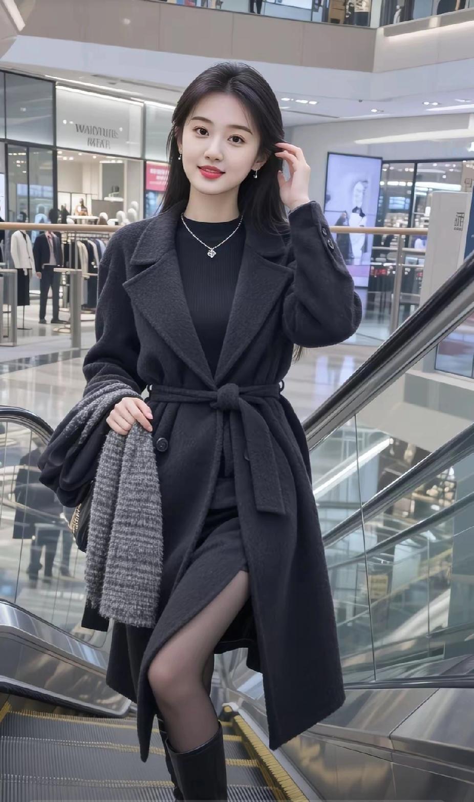黑色大衣搭配灰色围巾,温暖又时尚!