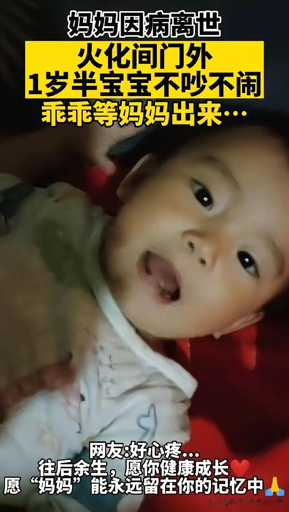 看着太让人心酸了,这么点的小宝宝就失去了妈妈,1岁半的她还不懂事,蹲在火化场门口等着妈妈出来,可是她再也等不到了。