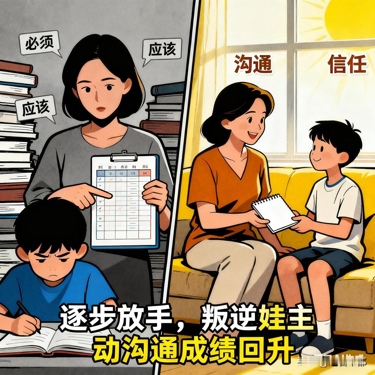🔥养娃最大的争议:到底该不该放手? 说放手吧,怕孩子学坏、成绩掉队; 说不放手吧,又怕养出妈宝男、没主见的娃。 身边有朋友对孩子从四年级就放手,不接送不陪写作业,孩子反而自律拿奖; 也有开馆子太忙,娃散养不管,孩子迷上游戏,成绩一落千丈。 也有那种妈妈从事事紧盯到逐步放手,结果叛逆娃竟主动沟通成绩回升。 其实根本不是放不放的问题,是怎么放! 不是甩手掌柜,是有底线的信任 自己做主,对结果负责! 你敢对孩子彻底放手吗?