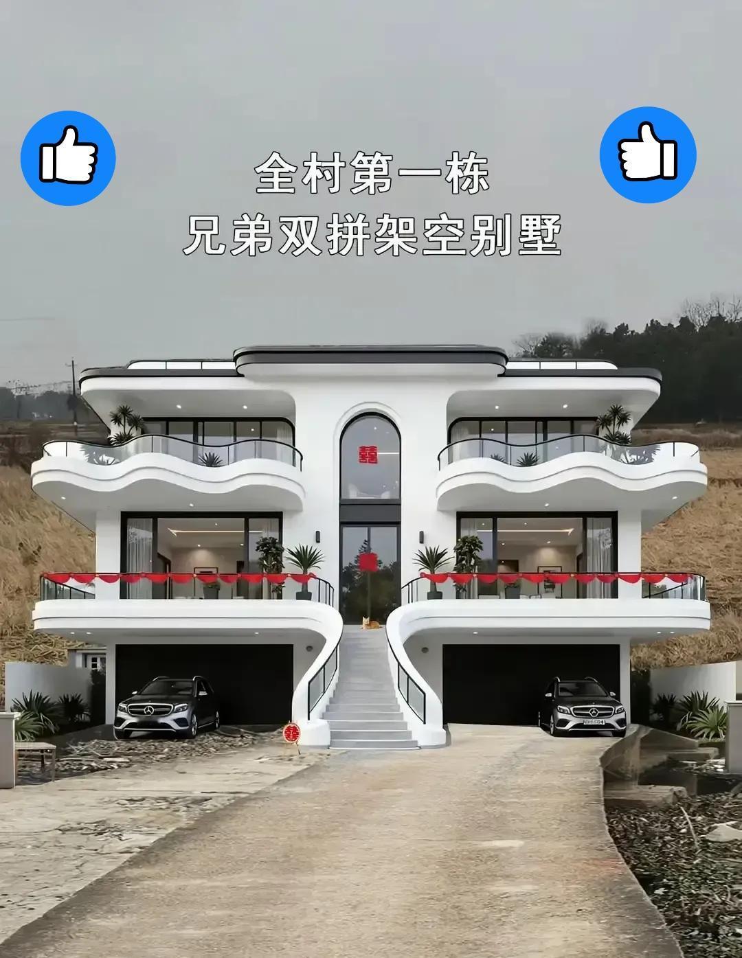 湖南一对兄弟嫌分家太折腾,干脆把十年打工的积蓄凑到一块儿,盖了栋左右对称的架空别墅。 有意思的是,房子中间只砌了墙,没留一扇互通的门。 这段建房航拍视频一曝光,直接冲上八百万播放量。 网友们看完都乐翻了:这要是走亲戚,先去左边吧,怕得罪右边;先去右边吧,又怕惹着左边。 干脆谁家都别去,省得落埋怨!再瞧瞧两边车库里停的车,就知道这兄弟俩绝对不差钱。 更绝的是另一户人家,家里十六个兄弟分宅基地,分到每家手里就只剩巴掌大的地方,挤个小房间都够呛。 兄弟几个一拍即合,干脆集资盖了栋大楼——既不浪费土地,平日里还能互相照应。 不得不说,这脑洞是真的大,盖出来的房子也着实漂亮!