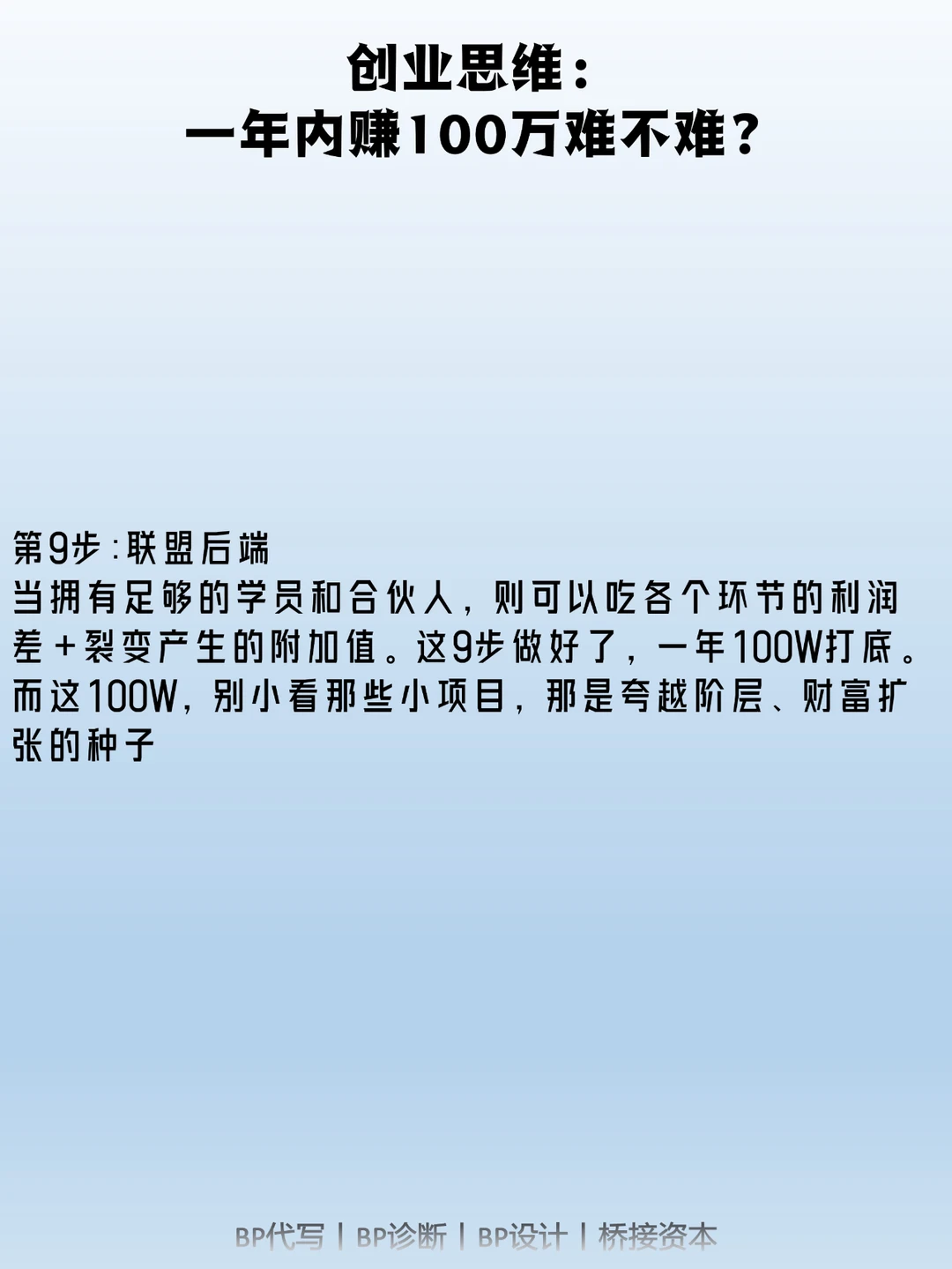 大佬年赚100w的模型 大佬总结出了9个步骤 按照这套横型走下去 一年100万问题不大