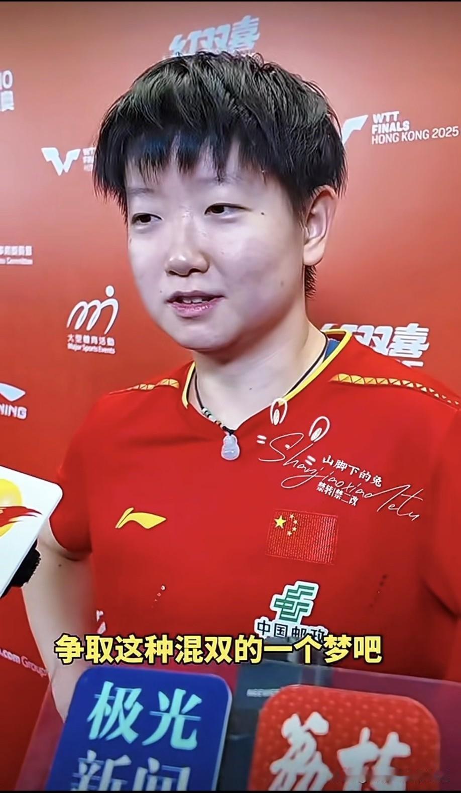 头哥前面说的很委婉,还是妹宝说的很明了! 他说的+她说的=他们想打混双,有一颗想继续混双的梦[比心][比心][比心] 他们俩北满开始对于混双的采访就越来越明牌了! 给人感觉好像反复都在强调打混双有意思,不用训练就很默契! 打混双太快乐了!就是想要打混双,大家都听见没有[大笑] 幸福的是北满过后他们越来越勇,不幸的是仿佛听见WF心碎的声音[偷笑] 如果你是真正的粉丝,他们选择什么什么,你就尊重并支持他们的选择!现场和屏幕前的只要喊加油就行!