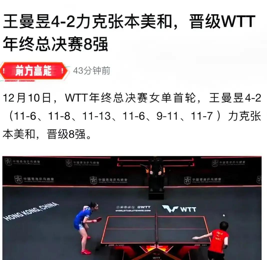 4天,连赢两次。 王曼昱又是4比2拿下了张本美和,这WTT香港总决赛看得人手心冒汗。 虽说比分11-6、11-8开局挺顺,但中间那几局的胶着,明显感觉对面那小孩儿在进化。 很多人都在欢呼,我倒觉得这事儿有点“细思极恐”。 国乒这是把曼昱当成了专职“清道夫”? 频繁让最强战力去给对手“喂招”,这是在养蛊还是在磨刀? 要知道,这两人碰面的概率简直违背了统计学常识。 上次成都带伤3-0完胜,这次又是硬仗。 她嘴上说着“国家荣誉高于一切”,这话听着提气,可细琢磨,怎么透着一股子让人心疼的悲壮感。 毕竟,再锋利的刀,也经不住这么个磨法。