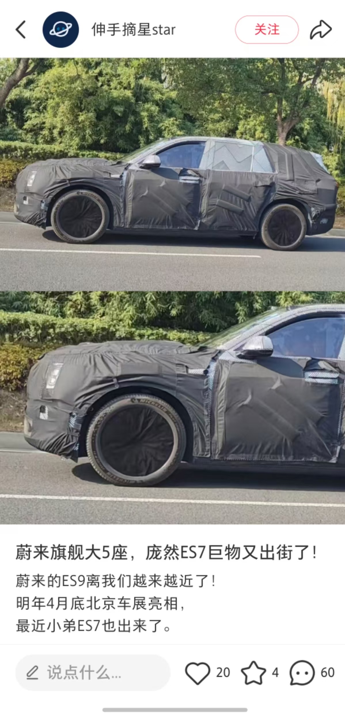 蔚来 ES7 和乐道 L80 都属于大五座 SUV,其实L80很多谍照,只是你没发现。聚焦到蔚来 ES7 这台车,我觉得定位是肯定没问题的,蔚来品牌 2026 年两台大车打天下。ES7 面向的是对储物空间有更大需求的用户,以及,这里您仔细品一下:更热爱户外运动的群体。滑雪板,高尔夫球具,自行车等等。随着咱们老百姓越来越热爱户外运动,细分市场需求刚需很大。他们看到 ES7 会觉得,嗯!就是这味,对了。ES8 始终走的是大六座大家庭的需求,和 ES7 的需求人群很不同。所以,我觉得 ES8 + ES7 是组合打增量拳。现在订了 ES8 不需要考虑 ES7,因为自己的第一感受和需求才是最真的。等的话,其实 ES9 和 ES7 没有那么快,之前斌哥说了。ES9 是集大成尊享,ES7 还有一些场景需求可以做得更好。我个人估计,没那么快。明年蔚来和乐道都是大车打市场,我个人觉得,要不要考虑尝试在 5566(加长版) ,甚至个性化的方盒子上,做做思考?按照蔚来的调性,也许会有不一样的产品出现。最近也有很多人问 ET7 改款的事儿,这事儿最近没啥消息,可以先放一放。