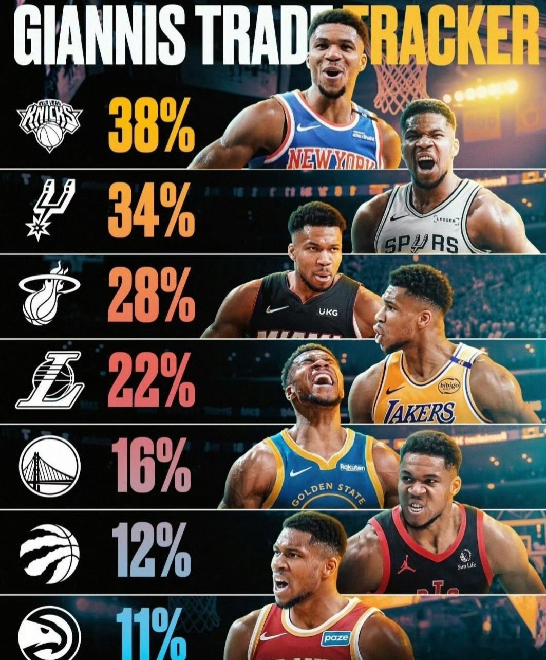 在根据爆料字母哥在纽约买了套房之后,目前他的最新下家赔率如下:尼克斯——38%马刺——34%热火——28%湖人——22%勇士——16%猛龙——12%老鹰——11%说句实话看过这么多关于字母的交易流言,我觉得他在本赛季应该不会离开雄鹿的,目前他因伤缺席,以及雄鹿签下他哥来镇压他,字母无论如何都不会被交易走的,至少要熬过这个赛季,如果本赛季雄鹿没法进季后赛(目前排在东部附加赛边缘!)那么字母无疑会在休赛期打包跑路!而根据下家赔率来看,我个人觉得字母哥会去尼克斯,首先是字母哥的耐造性适合尼克斯的五驴打法,其次是他的强硬属性比唐斯强!而其次是热火,热火的斯波体系也极其适应字母!而且去到热火,不管你是什么类型的球员,或者是有没有空间属性都没有问题!斯波会把你安排得明明白白,并且还能把你发挥到极致!字母哥去了,跟阿德巴约组成内线双塔,两个人又能从一防到五!真的不敢想象两个人的防守面积!其实马刺也有可能,马刺队内毕竟年轻人多而且选秀权也足!这些筹码都足以打动雄鹿管理层!而字母哥跟文班亚马的内线组合,我想谁来都不好使了!两个蜘蛛人站在场上,可想而知,不敢说外线有多强,至少内线防守上全联盟第一那是肯定的!总之,关于字母哥的任何交易流言,只能看接下来字母的团队以及雄鹿管理层的安排了。以上仅个人观点,仅供参考哈!纽约尼克斯雄鹿字母哥交易