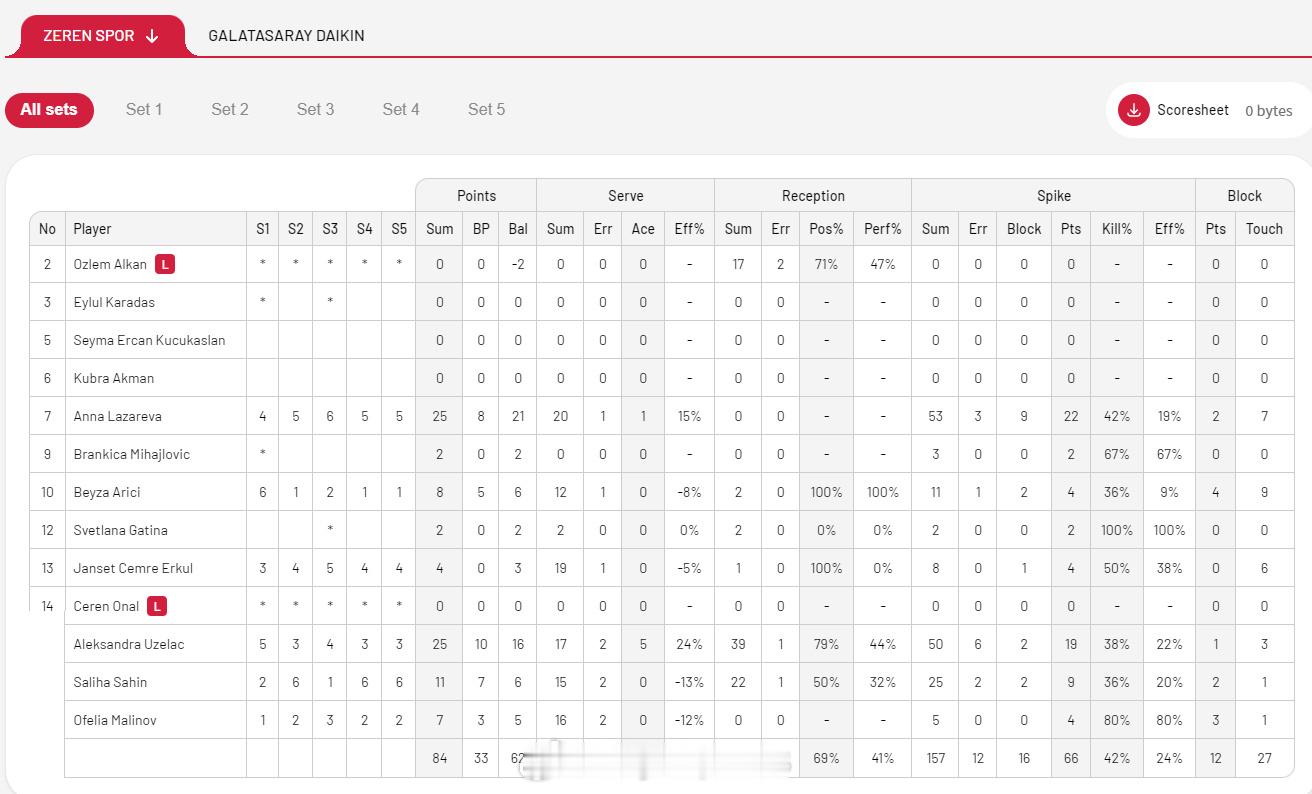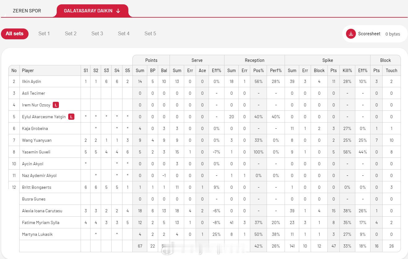 【土超女排加拉塔萨雷2-3泽伦 王媛媛9分7拦】国际排坛战报速递中国排球留洋动态 12月11日,土超女排第10轮,加拉塔萨雷苦战五局,客场2-3(25-19/18-25/25-17/11-25/10-15)不敌泽伦竞技,遭遇第三败。卡鲁塔苏18分、伊尔金14分、希拉12分、王媛媛9分(8扣2中7拦),拉扎列娃和乌泽拉奇各25分、S-沙辛11分。