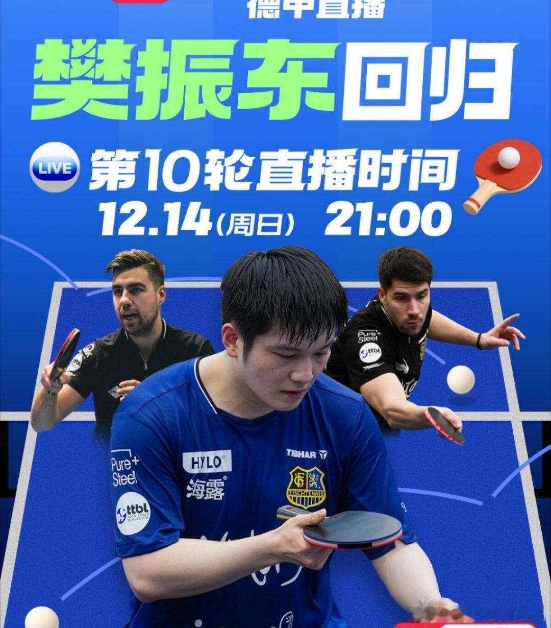 樊振东回归德甲!12月14号晚21点!🍠也可以看直播