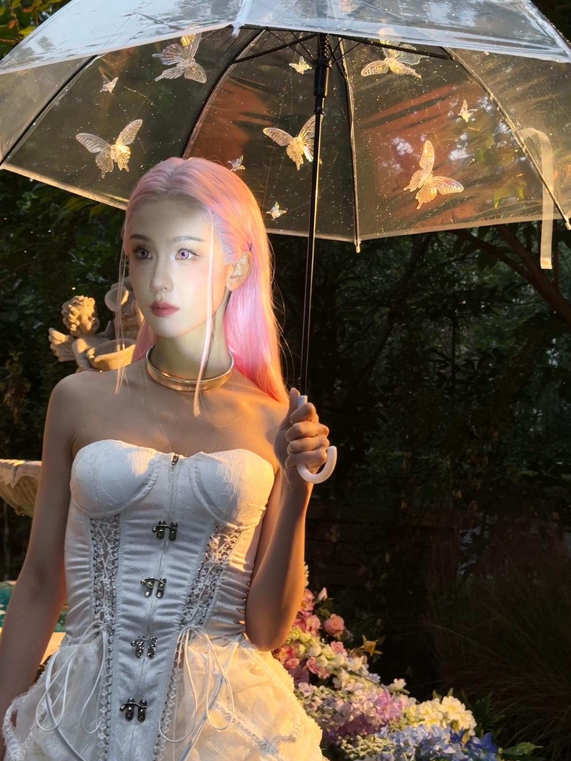 陈都灵幻梦生日周大片:紫发白裙,梦幻唯美的花园公主。陈都灵