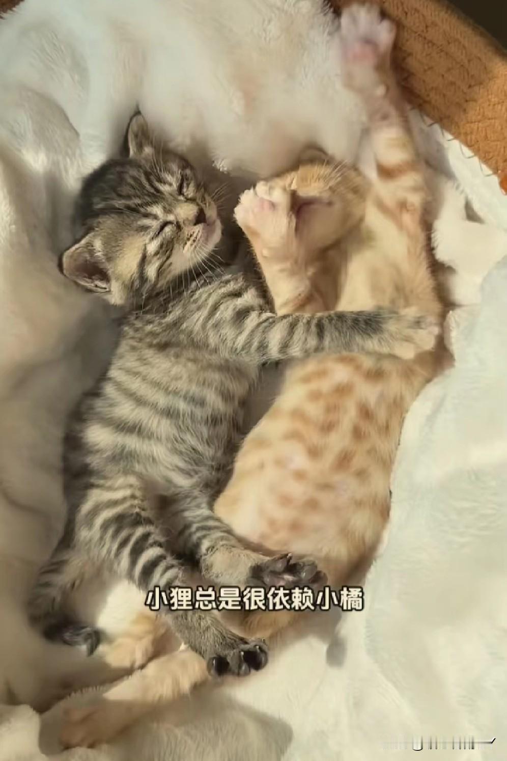 女子捡到橘猫“小橘”和狸花猫“小狸”,这俩小家伙打小相依,一同吃喝、一同睡卧,还