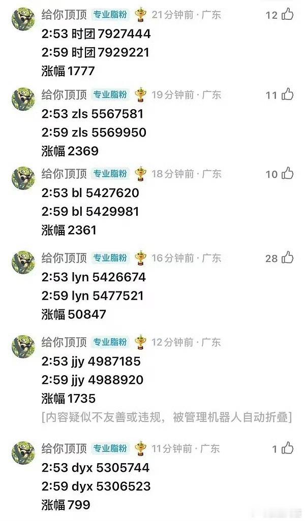 还真有人去统计这个投票……大家都说不在意但是实际上都非常在意。星光大赏各家涨幅