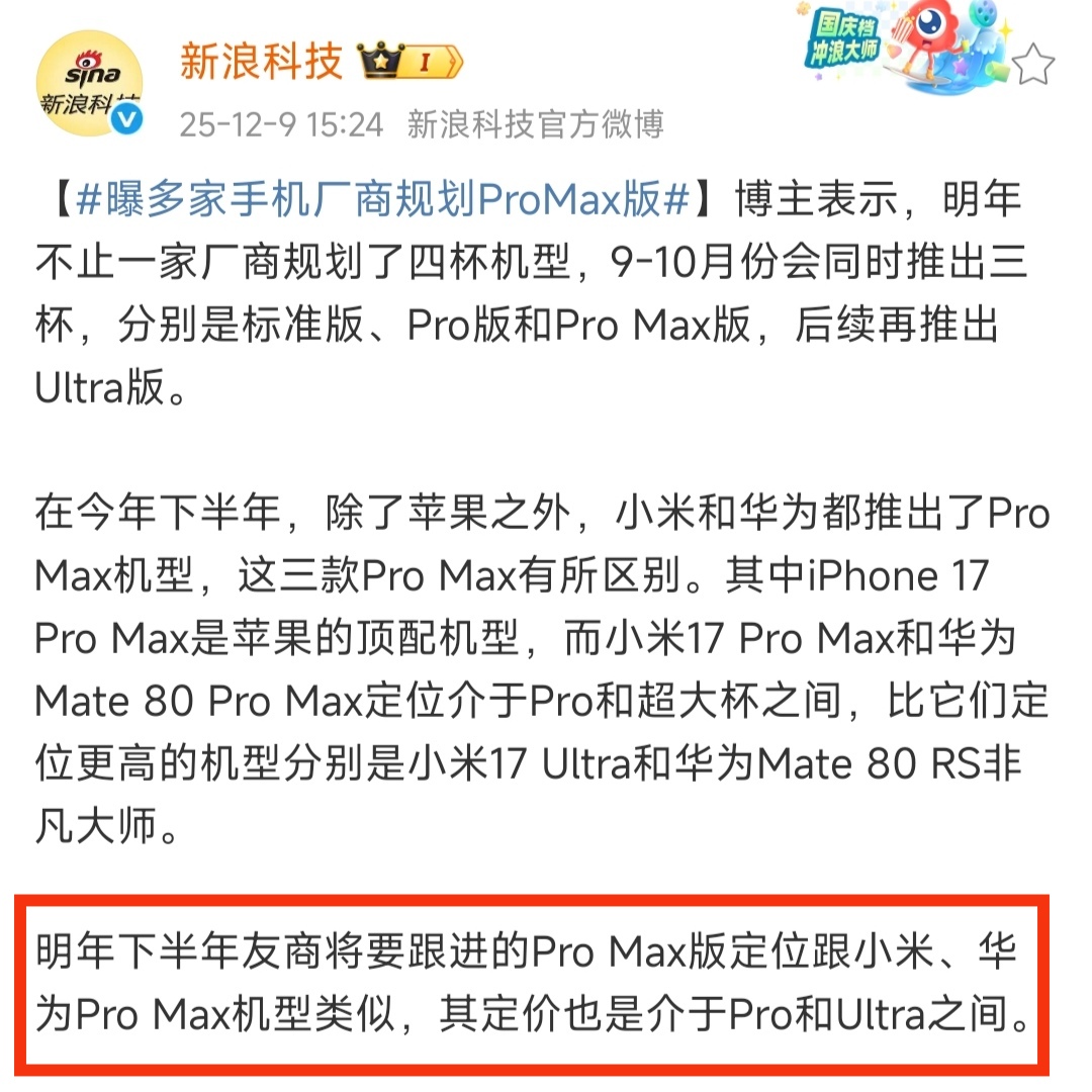 之前网友为了小米改名字都在骂小米,但是现在来看,友商都在学习小米,纷纷跟进大小屏旗舰策略,还增加了像小米一样ProMax机型,只不过我发现也没人去骂友商了。我是觉得小米先把路趟出来,然后被石头砸了脚。而国内友商顺着小米的路走,还能捡到好处,这就是树大招风的“代价”。